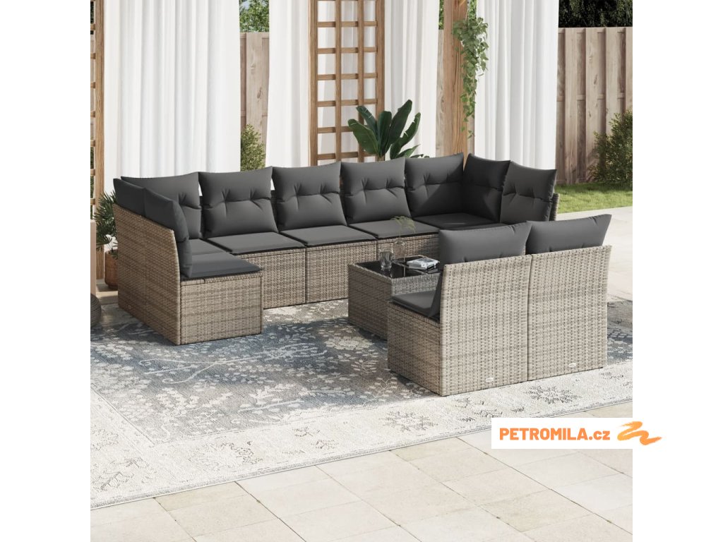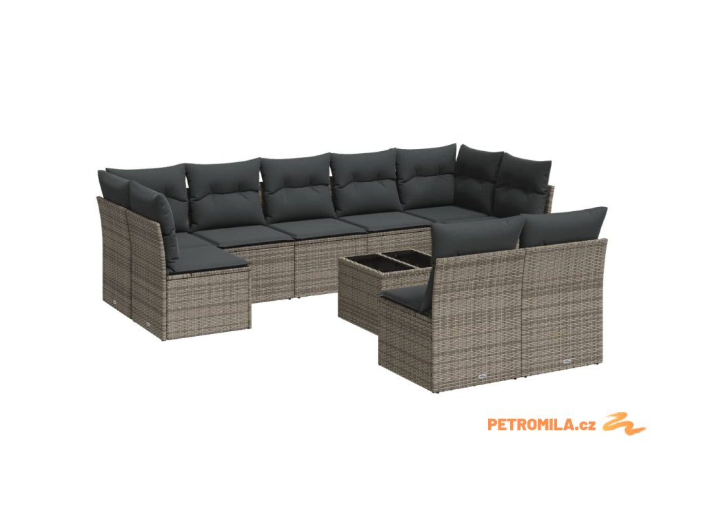 10dílná zahradní sedací souprava s poduškami šedá polyratan