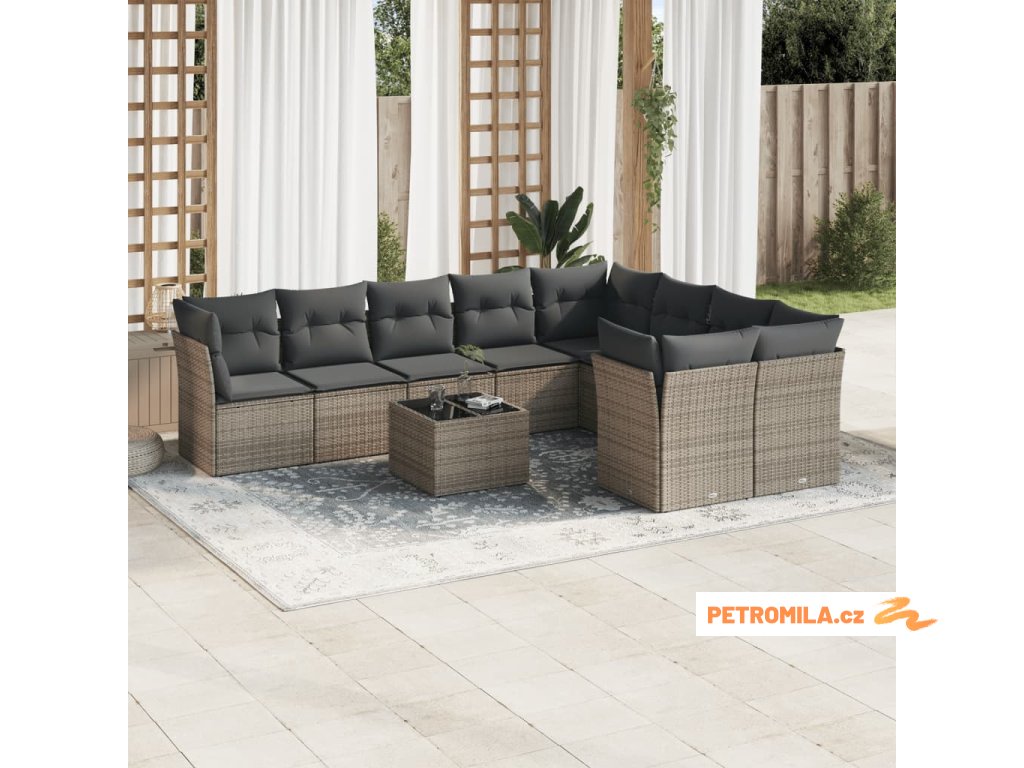10dílná zahradní sedací souprava s poduškami šedá polyratan