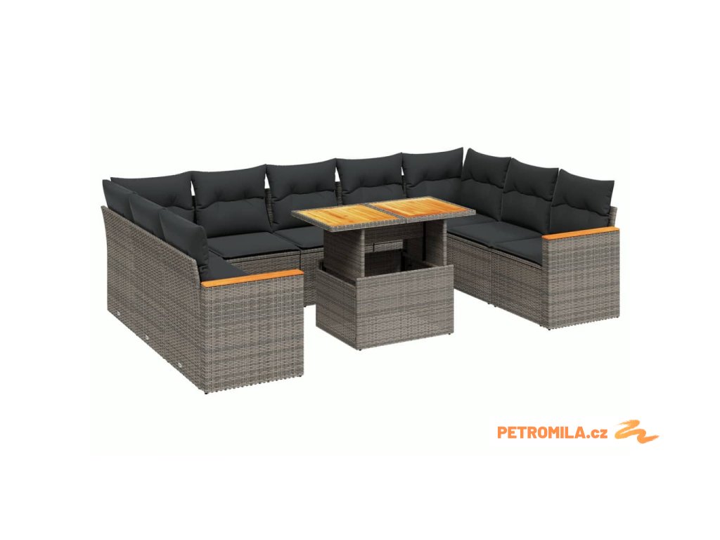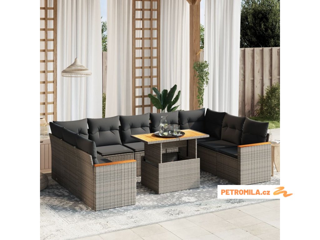 10dílná zahradní sedací souprava s poduškami šedá polyratan