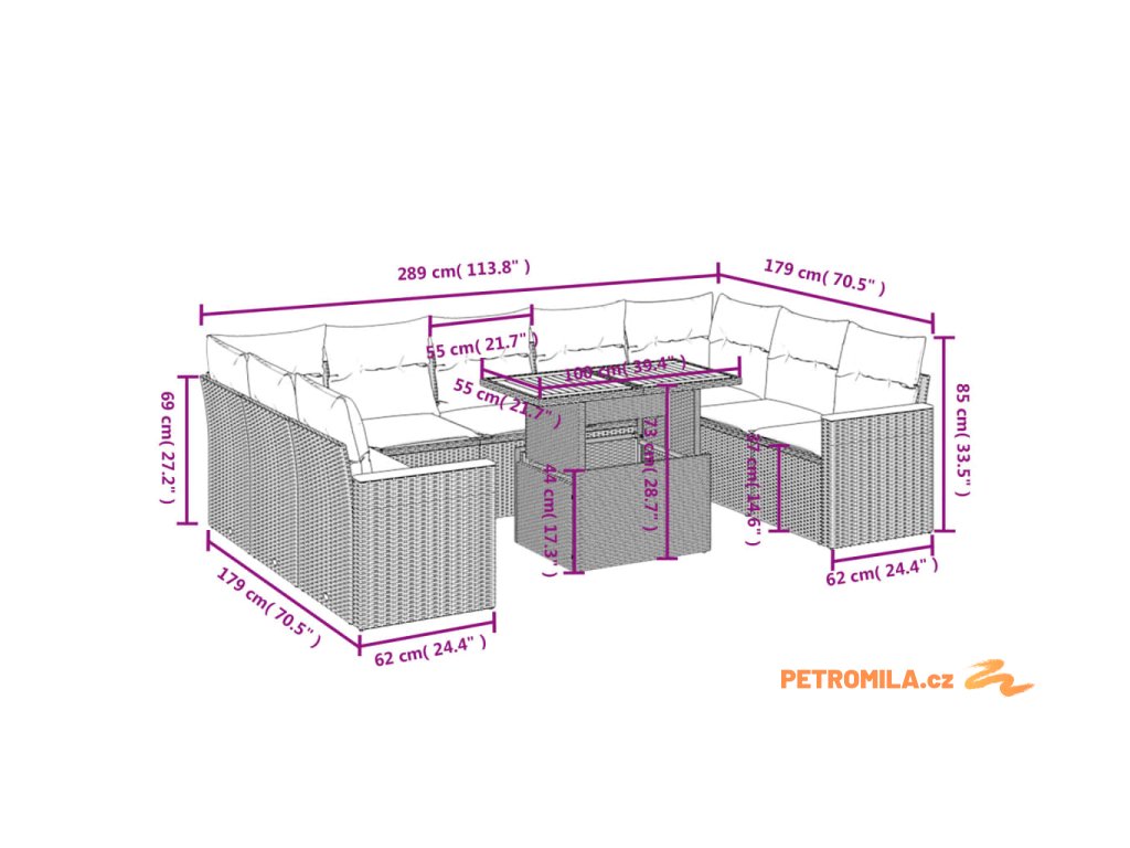Sada zahradních pohovek s úložištěm 11 pcs Šedá Poly ratan