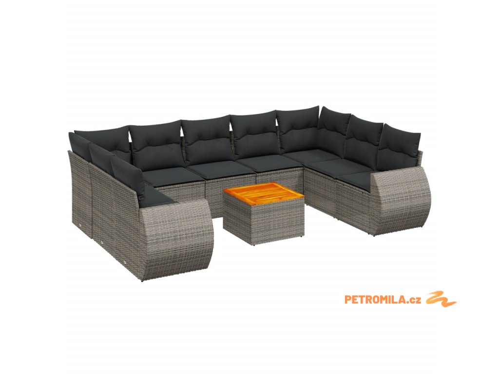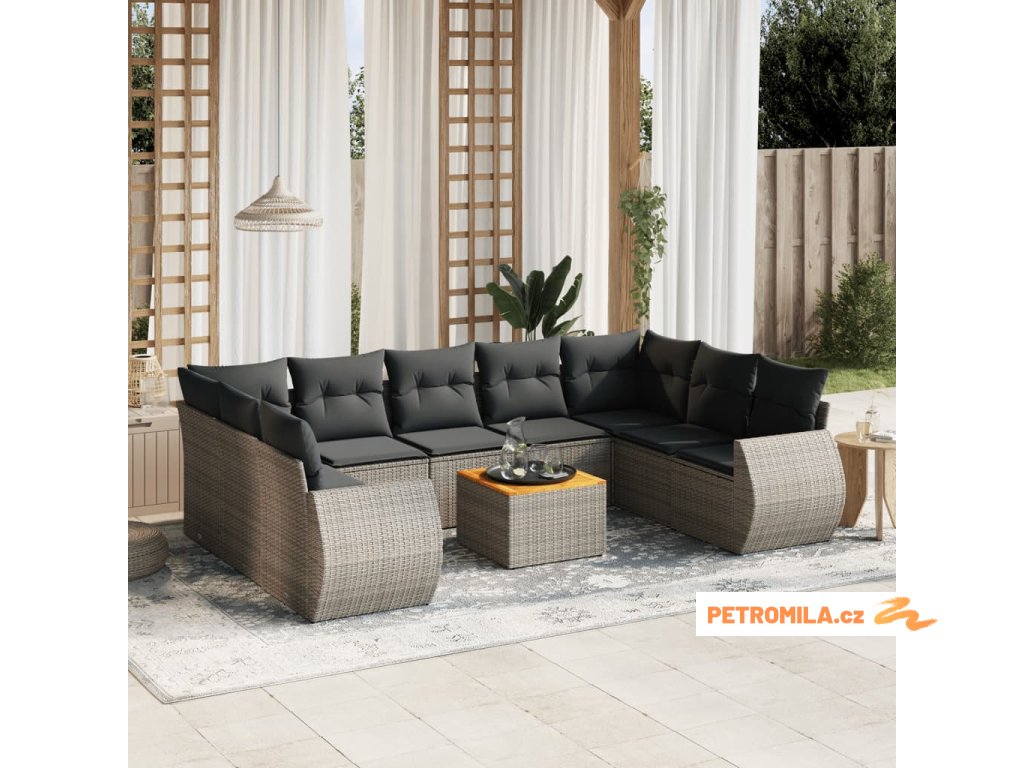 10dílná zahradní sedací souprava s poduškami šedá polyratan