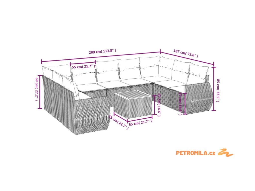 Sada zahradních pohovek s úložištěm 11 pcs Šedá Poly ratan