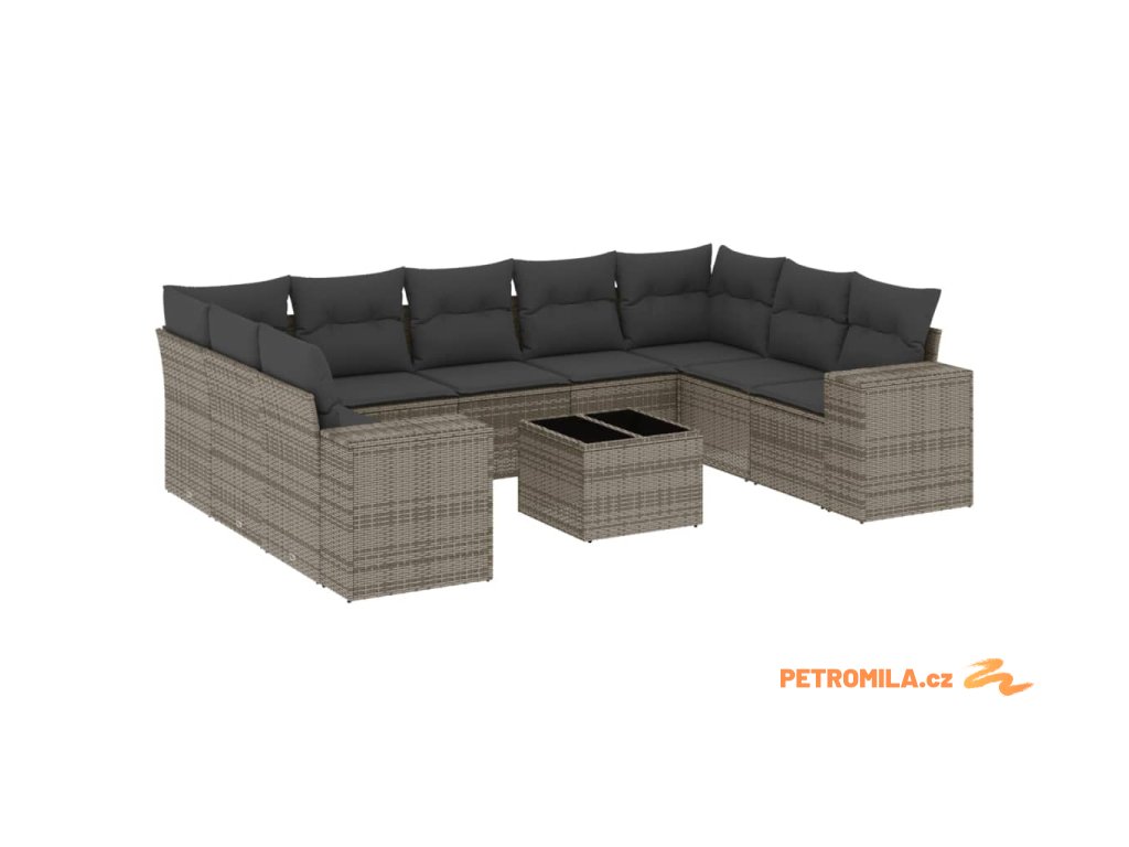 10dílná zahradní sedací souprava s poduškami šedá polyratan