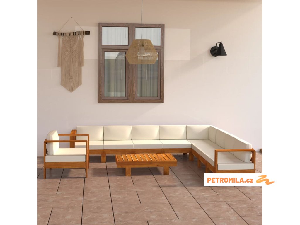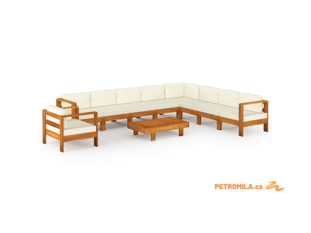 10dílná zahradní sedací souprava s polštáři 100 x 60 cm akáciové dřevo