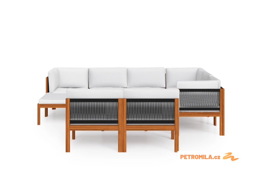 10dílná zahradní sedací souprava s polštáři krémové dřevo akácie a provaz