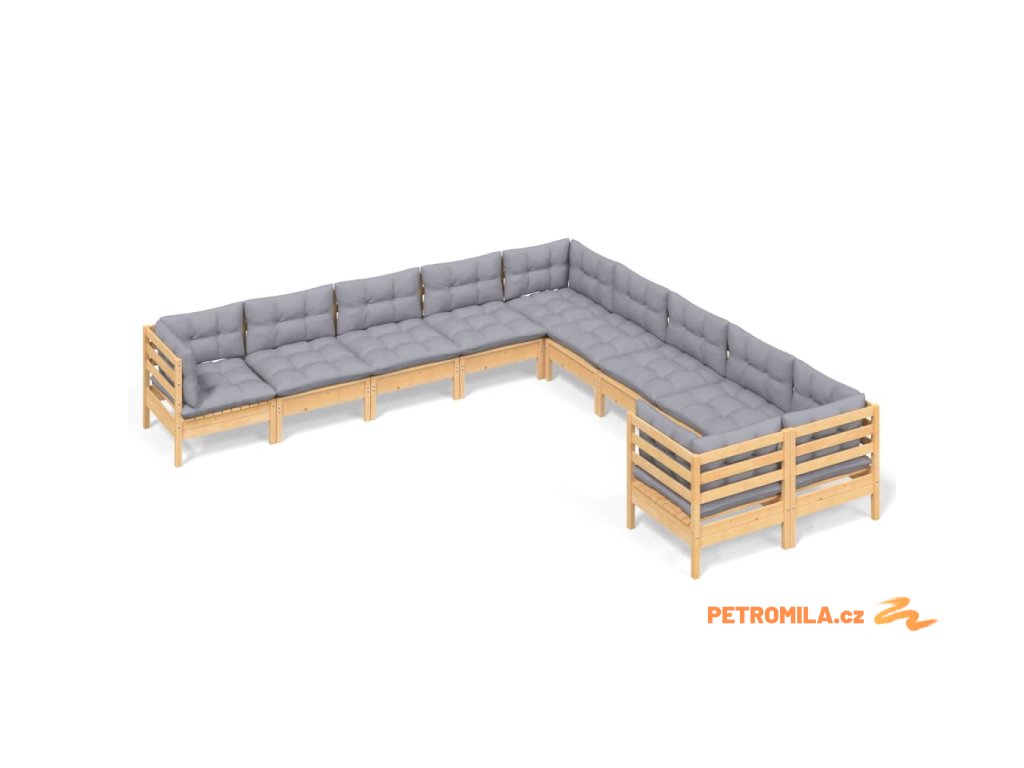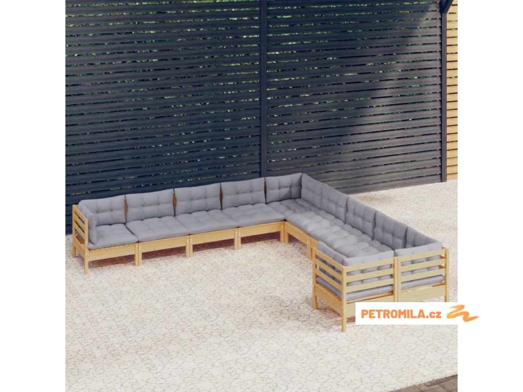 10dílná zahradní sedací souprava s šedými poduškami borovice