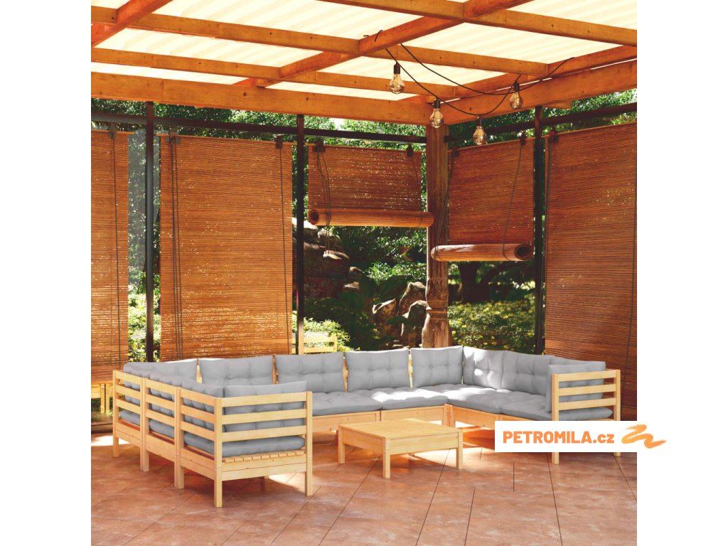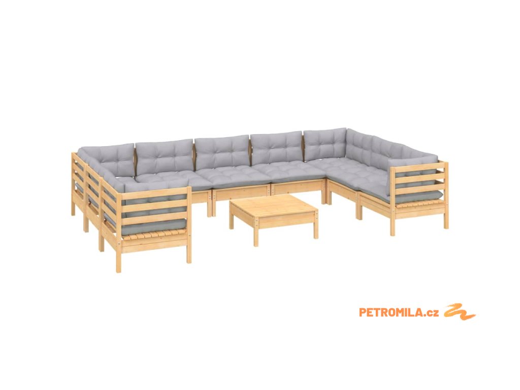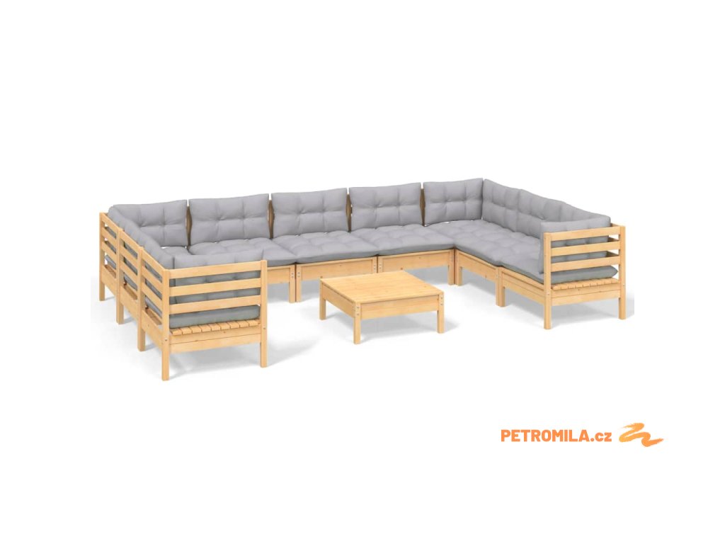 10dílná zahradní sedací souprava s šedými poduškami borovice