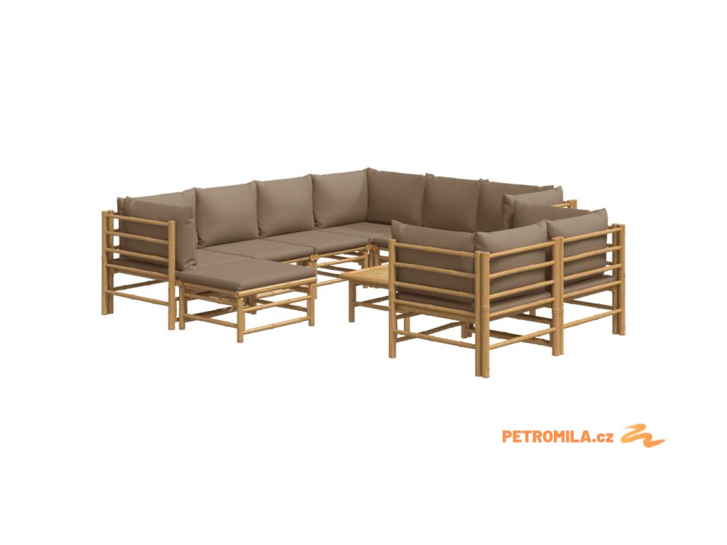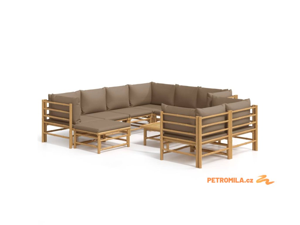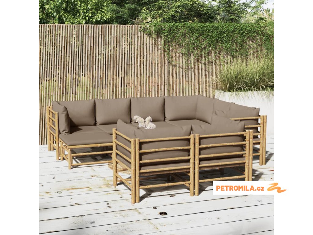 10dílná zahradní sedací souprava s taupe poduškami bambus