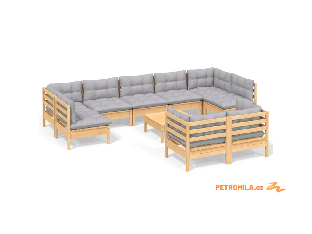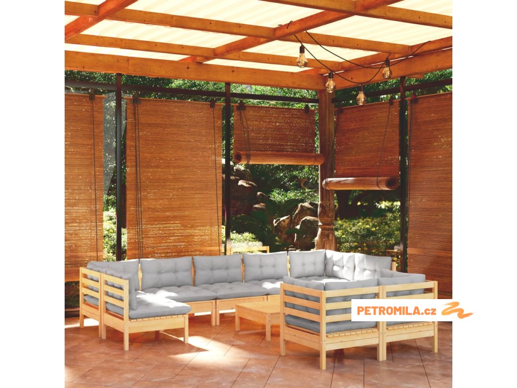 10dílná zahradní sedací souprava šedé podušky masivní borovice