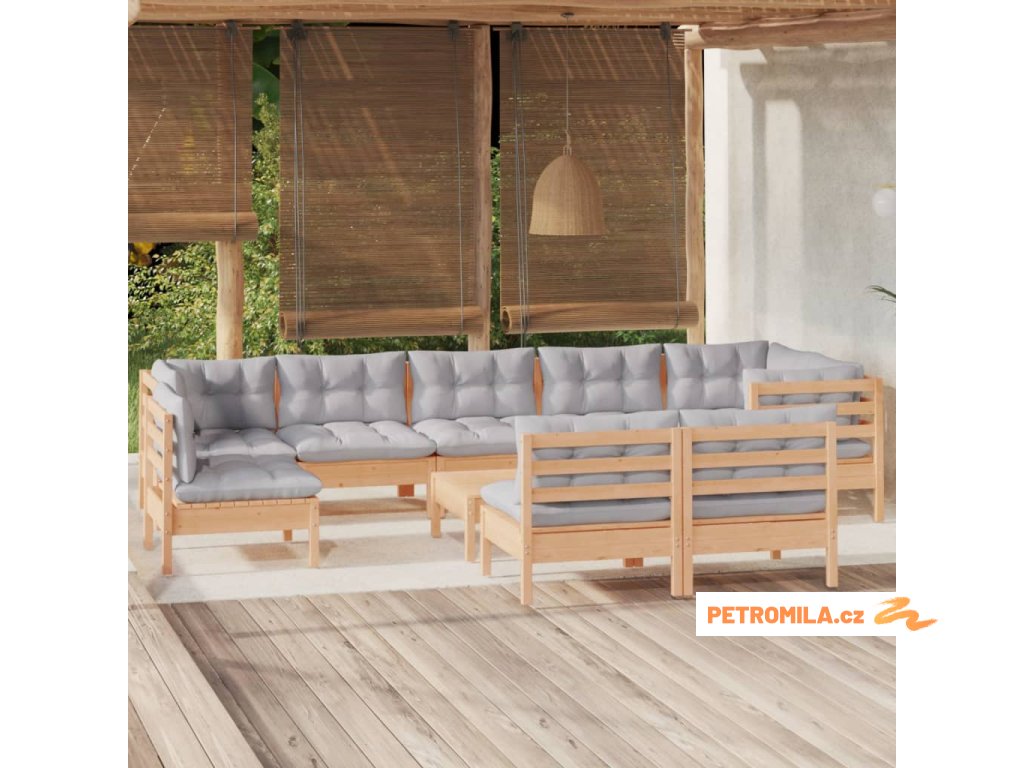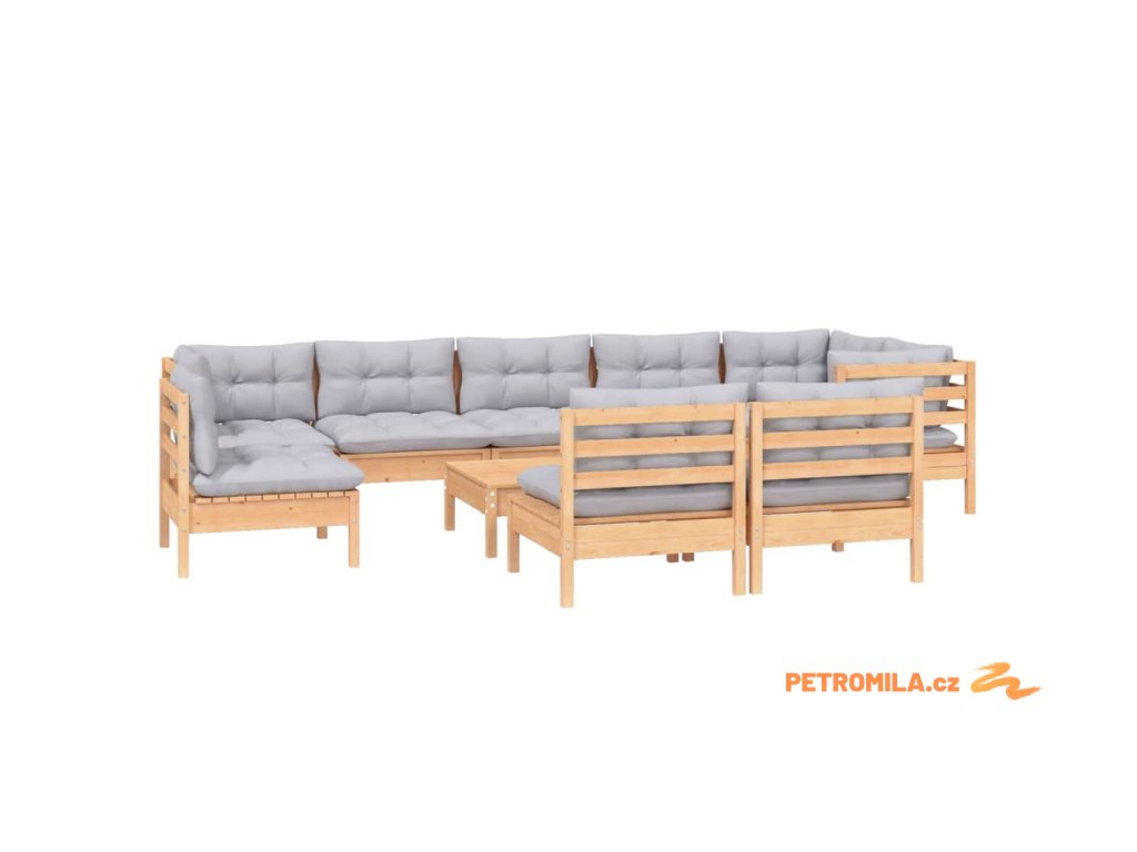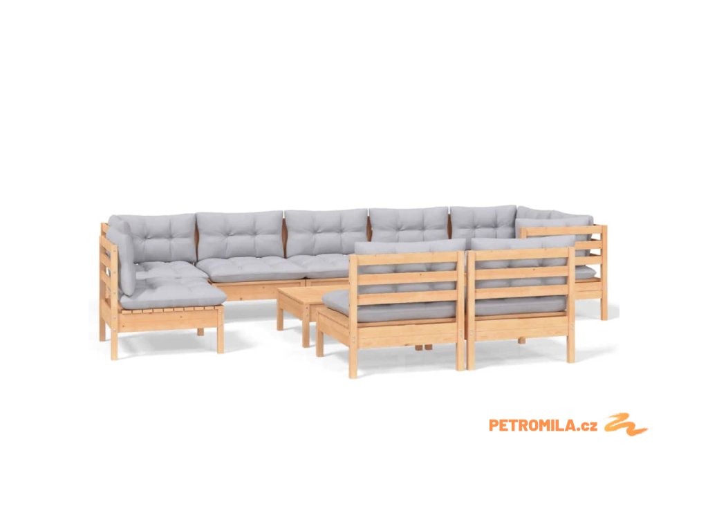10dílná zahradní sedací souprava šedé podušky masivní borovice