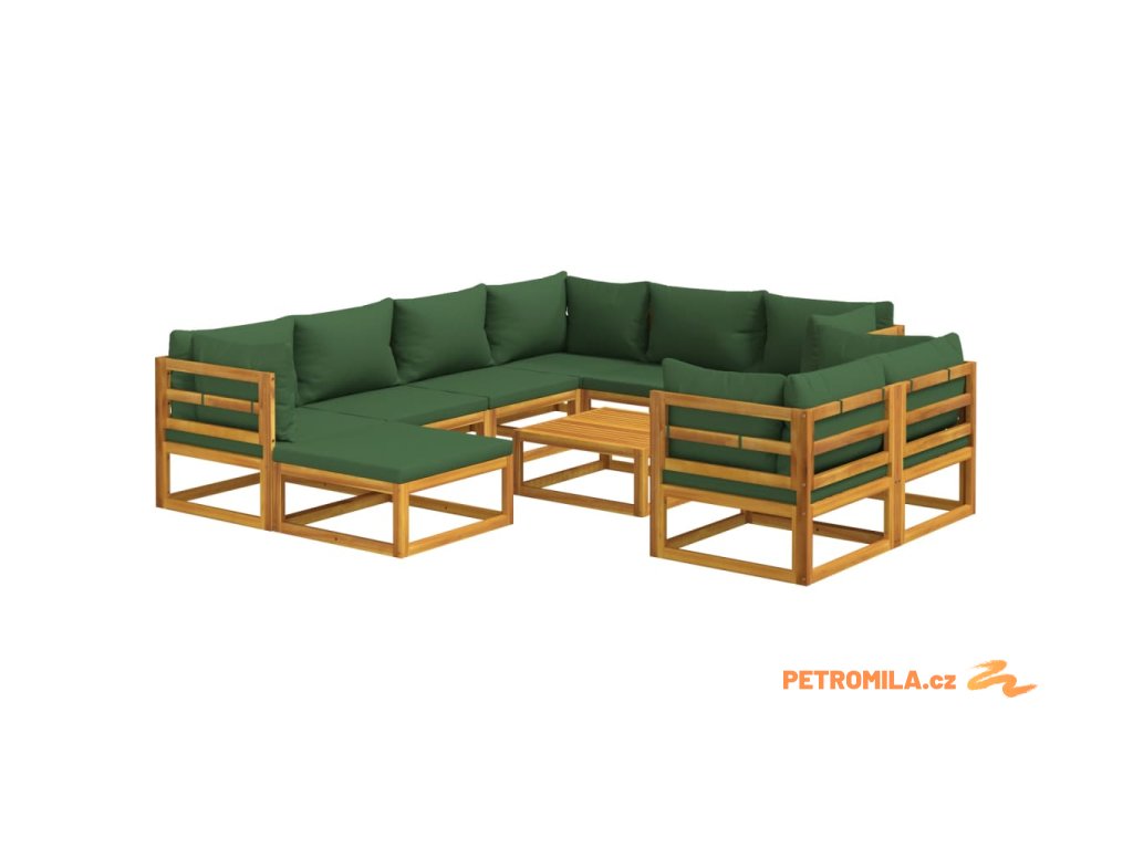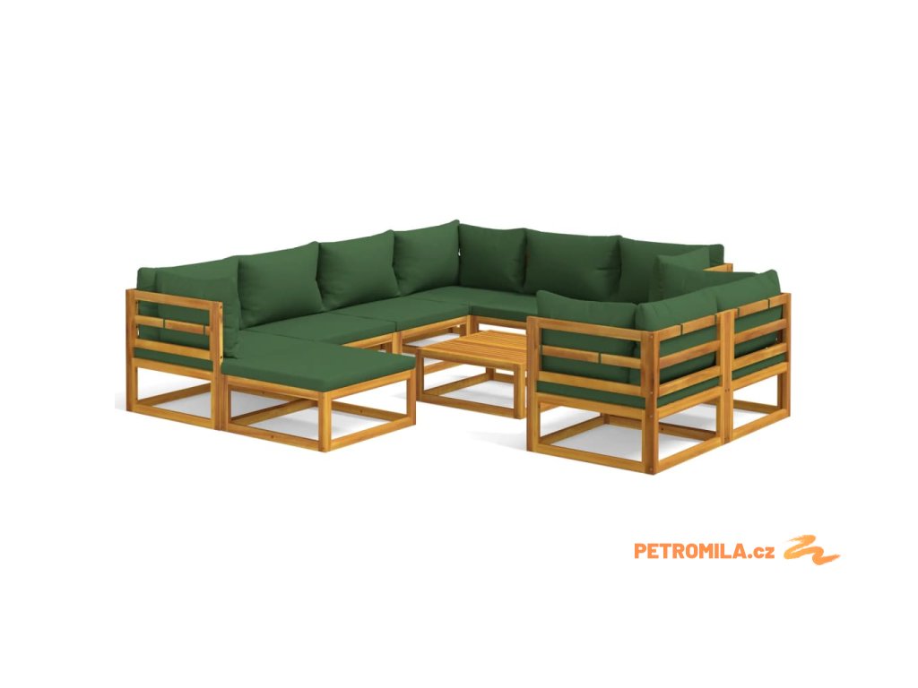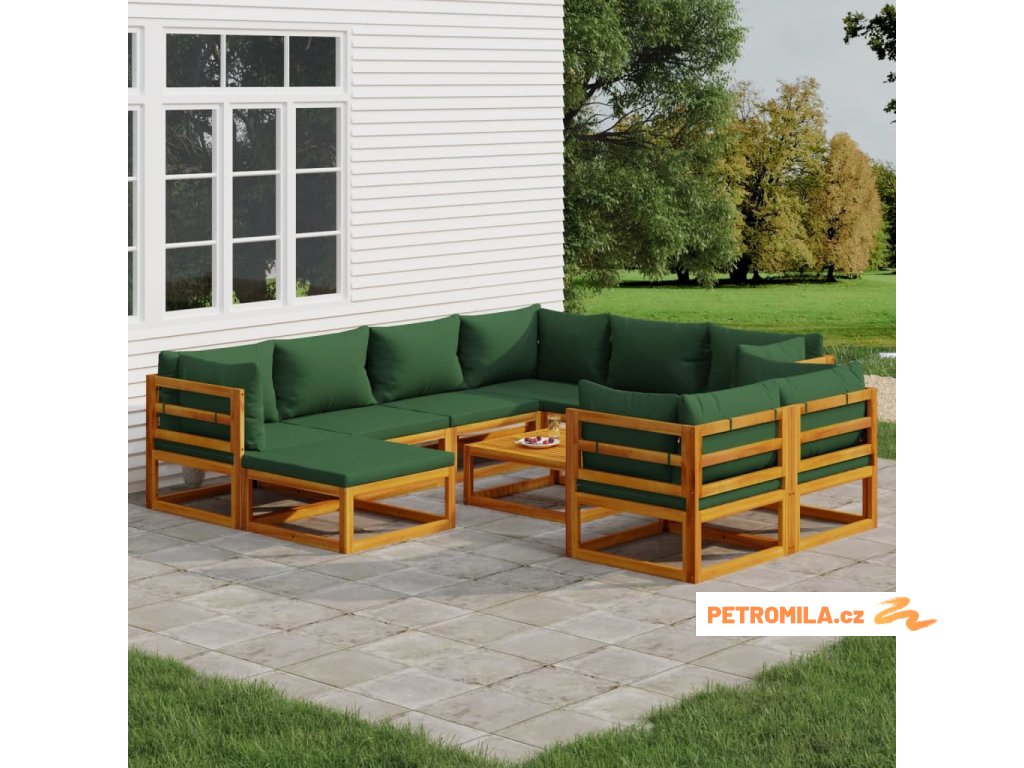 10dílná zahradní sedací souprava zelené podušky masivní dřevo