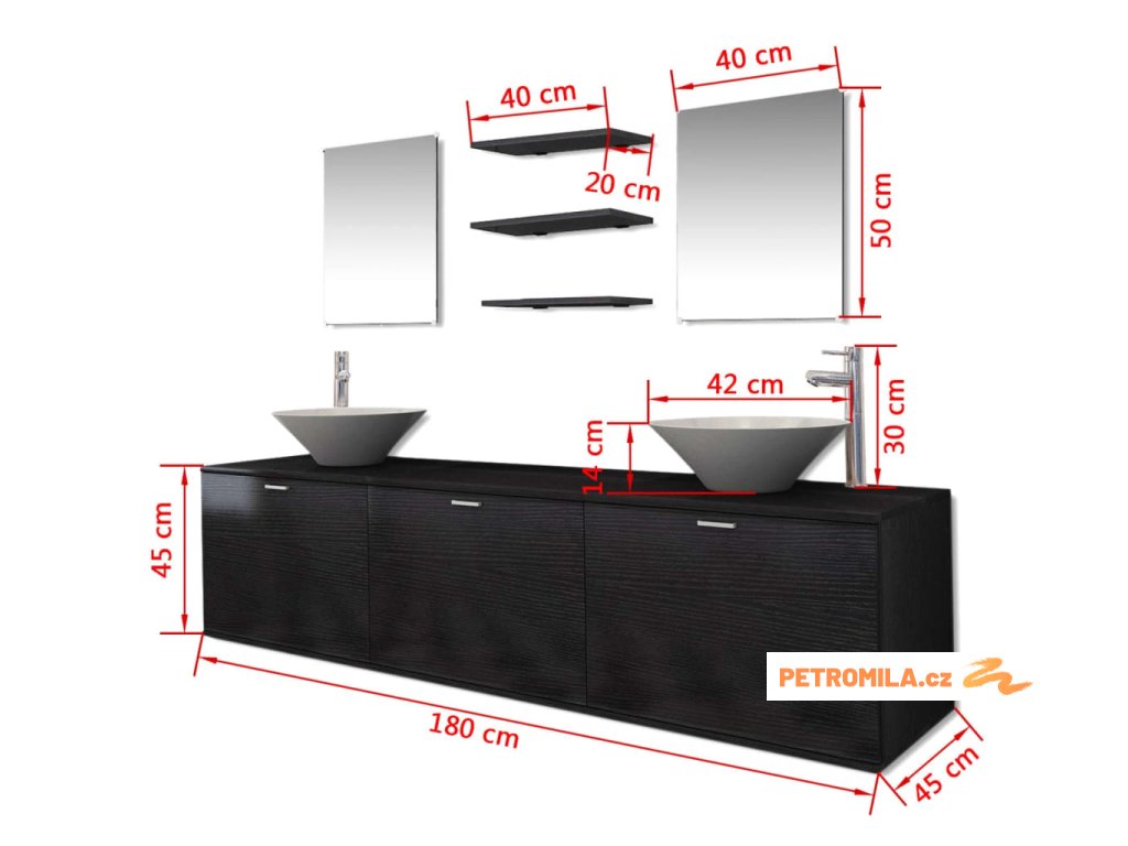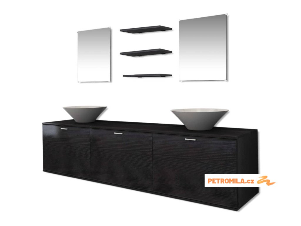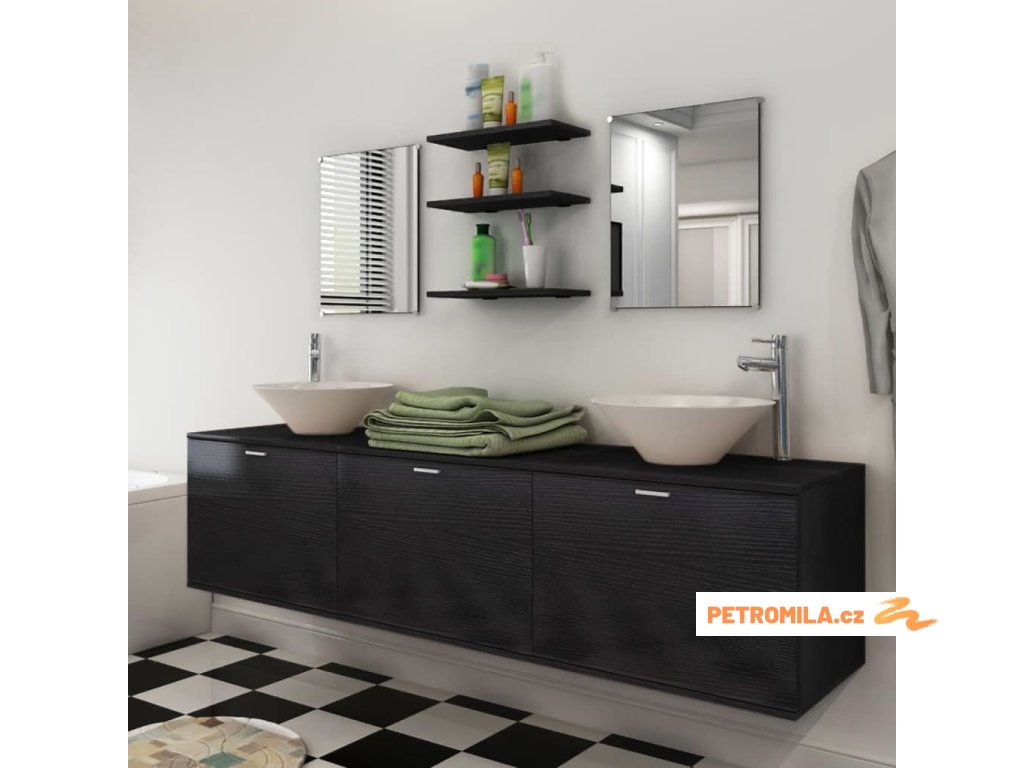 10dílný set koupelnového nábytku s umyvadlem a baterií černý