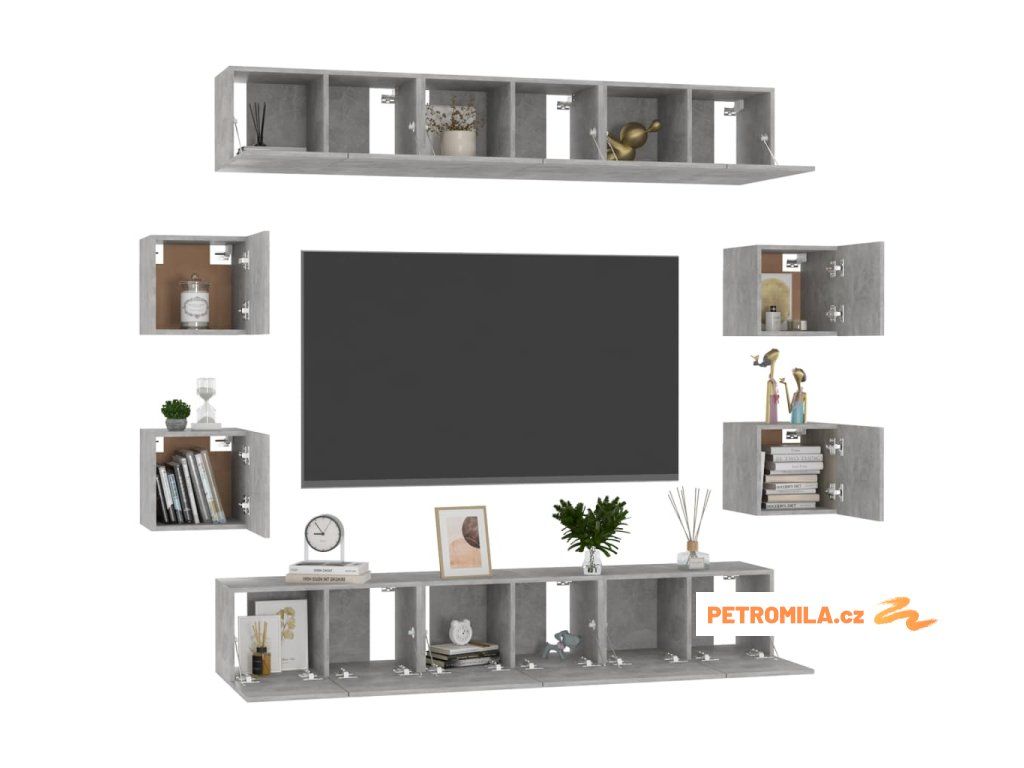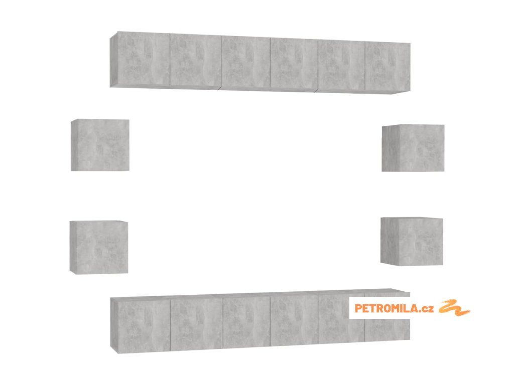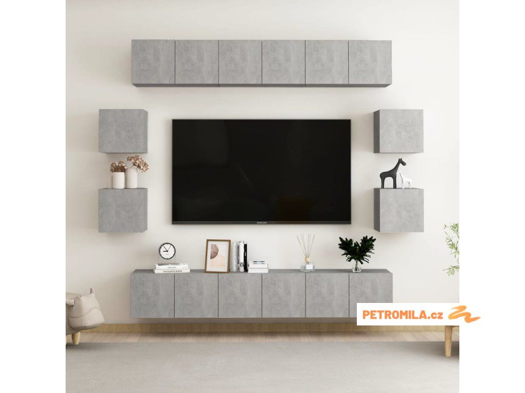 10dílný set TV skříněk betonově šedý dřevotříska