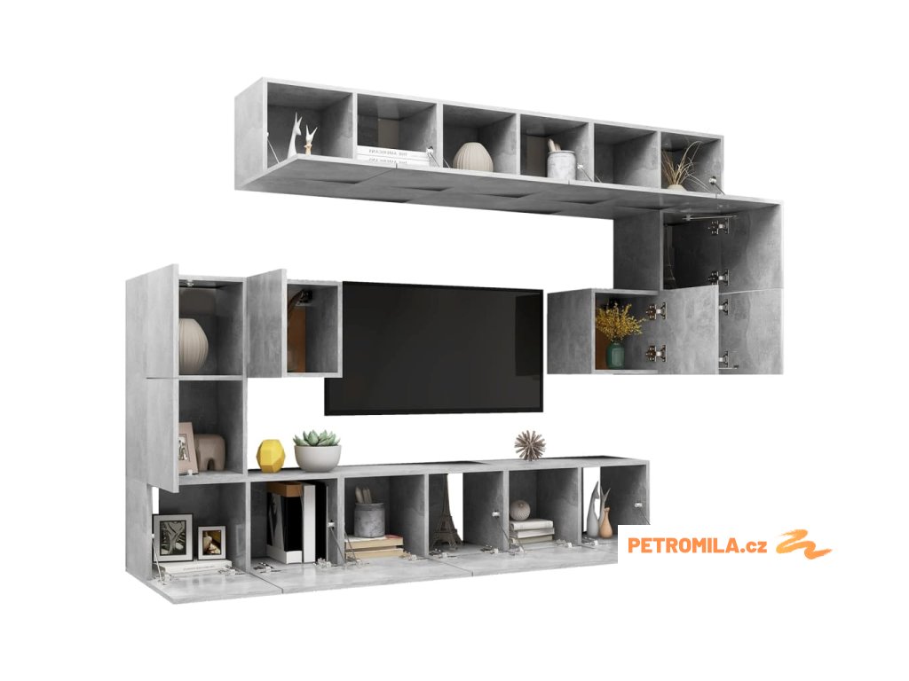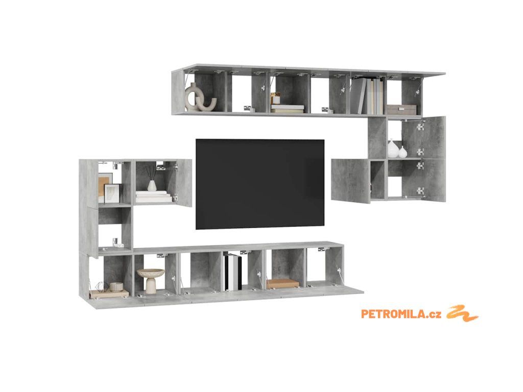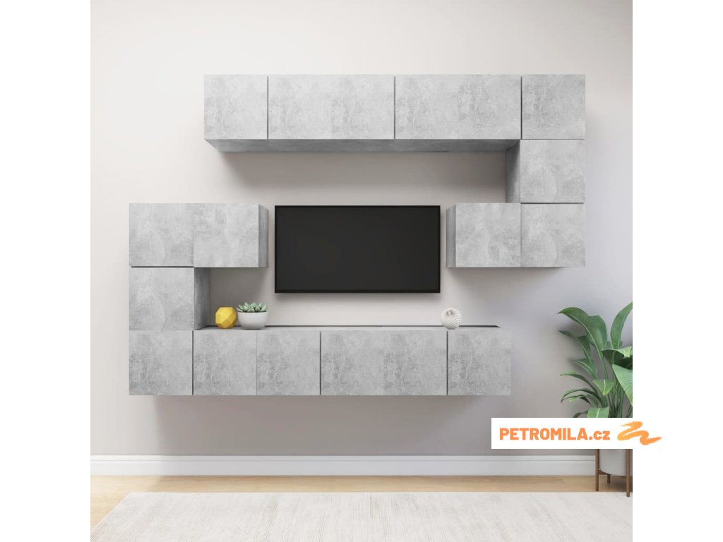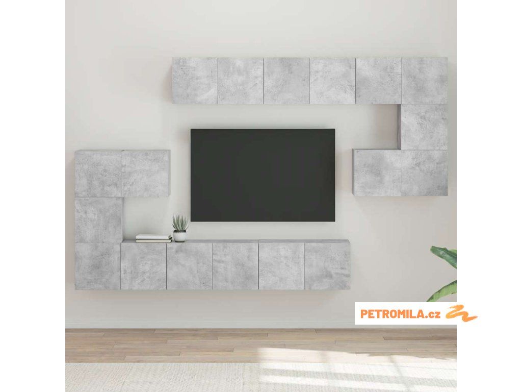 10dílný set TV skříněk betonově šedý kompozitní dřevo