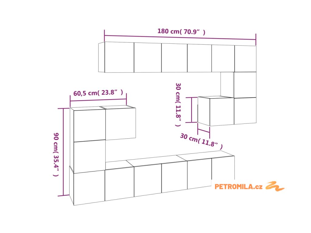 - 8 x TV skříňka: 60 x 30 x 30 cm (Š x H x V)