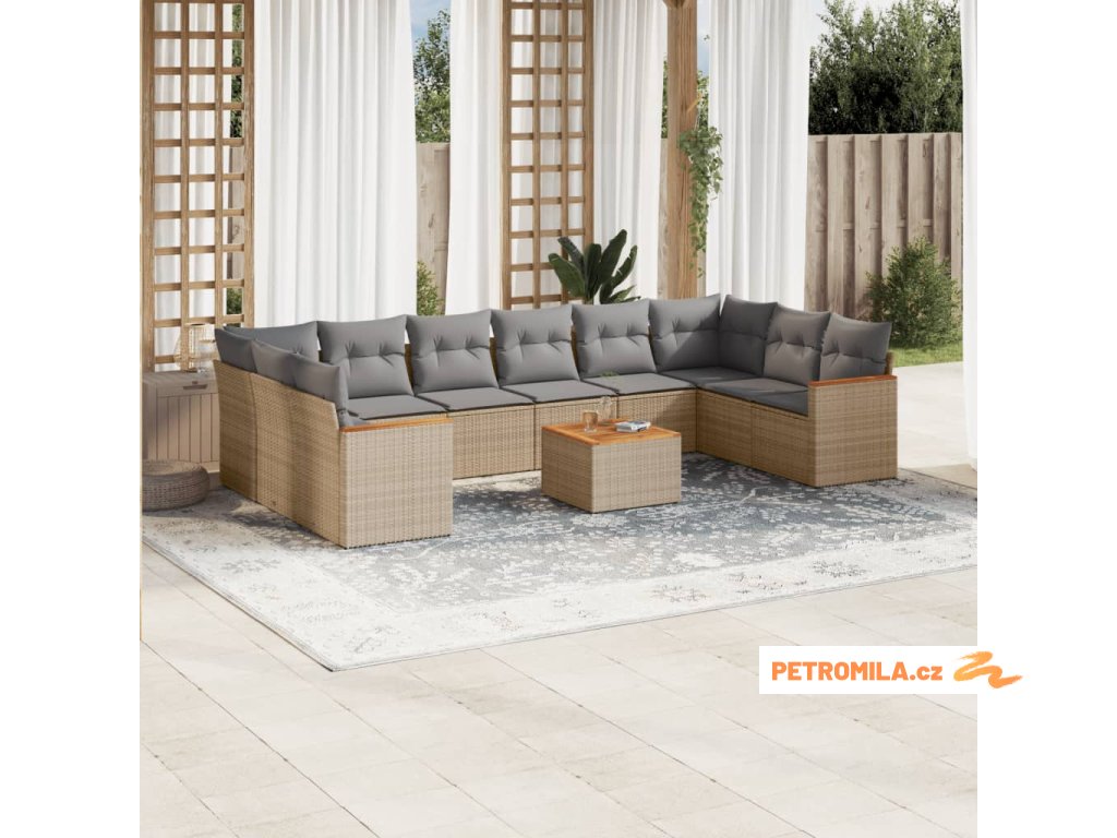 11dílná zahradní sedací souprava a podušky mix béžové polyratan