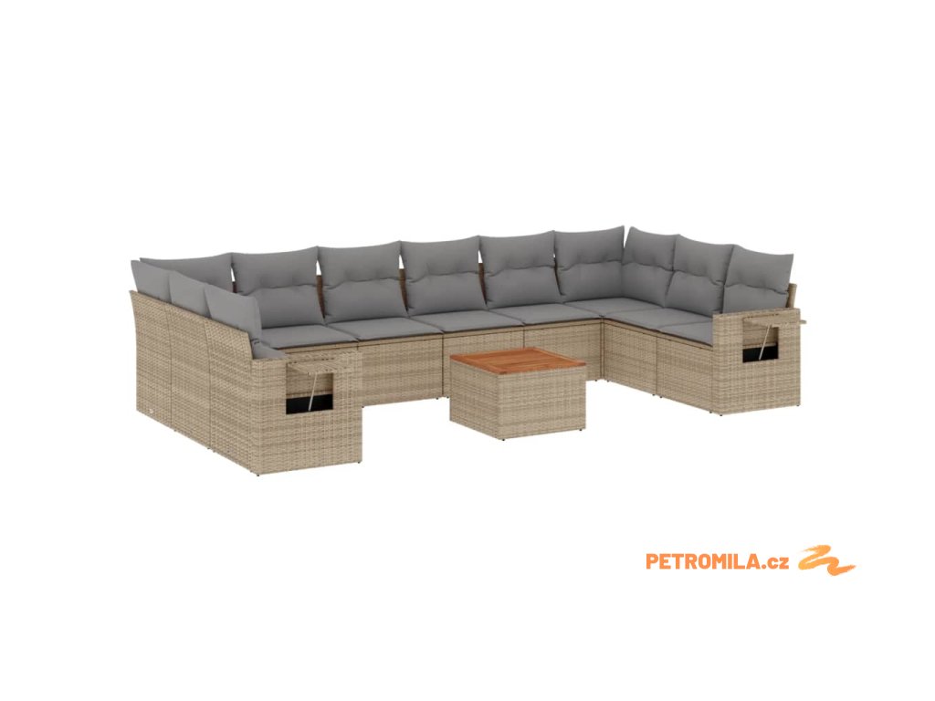 11dílná zahradní sedací souprava a podušky mix béžové polyratan