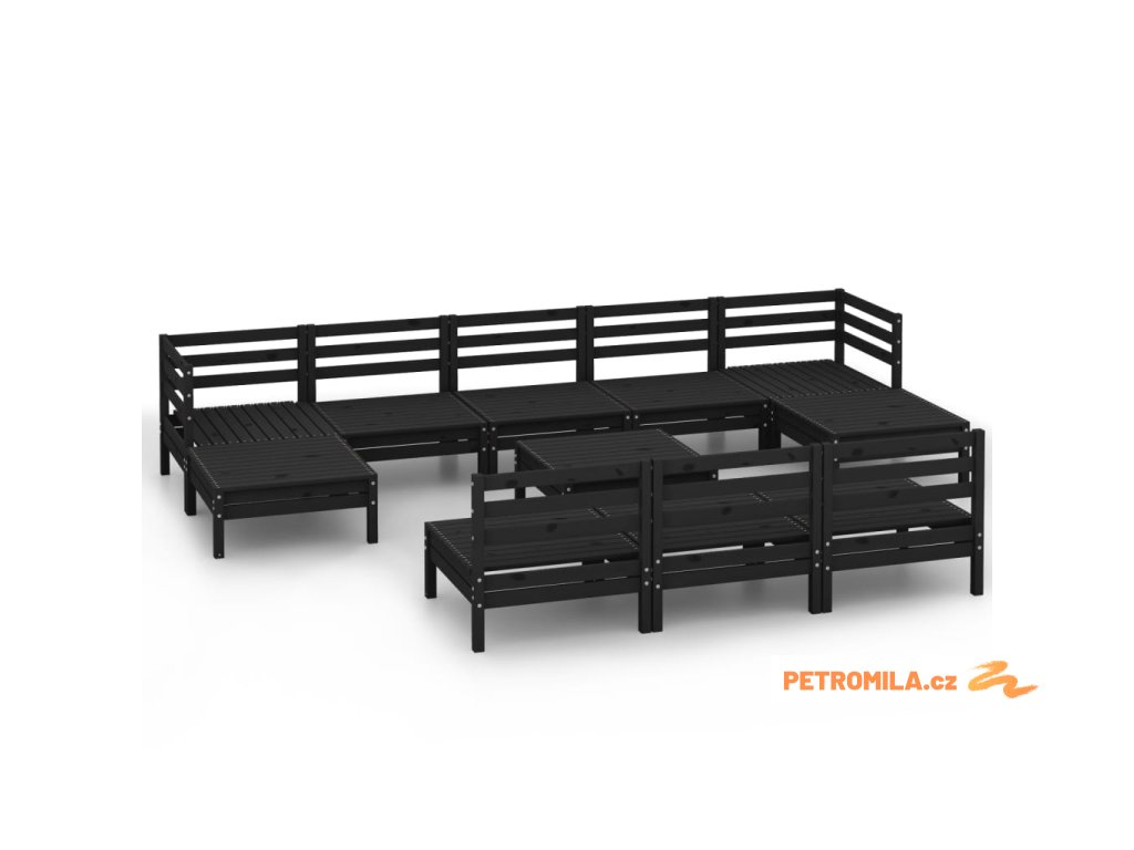 11dílná zahradní sedací souprava černá masivní borovice
