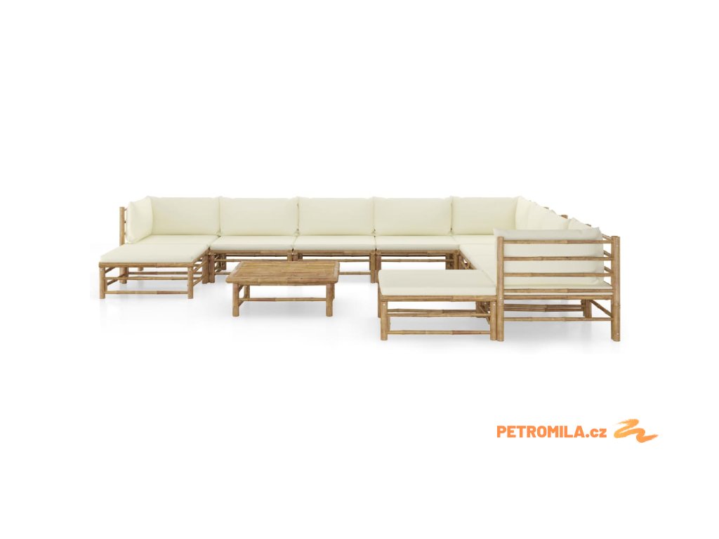 11dílná zahradní sedací souprava + krémově bílé podušky bambus
