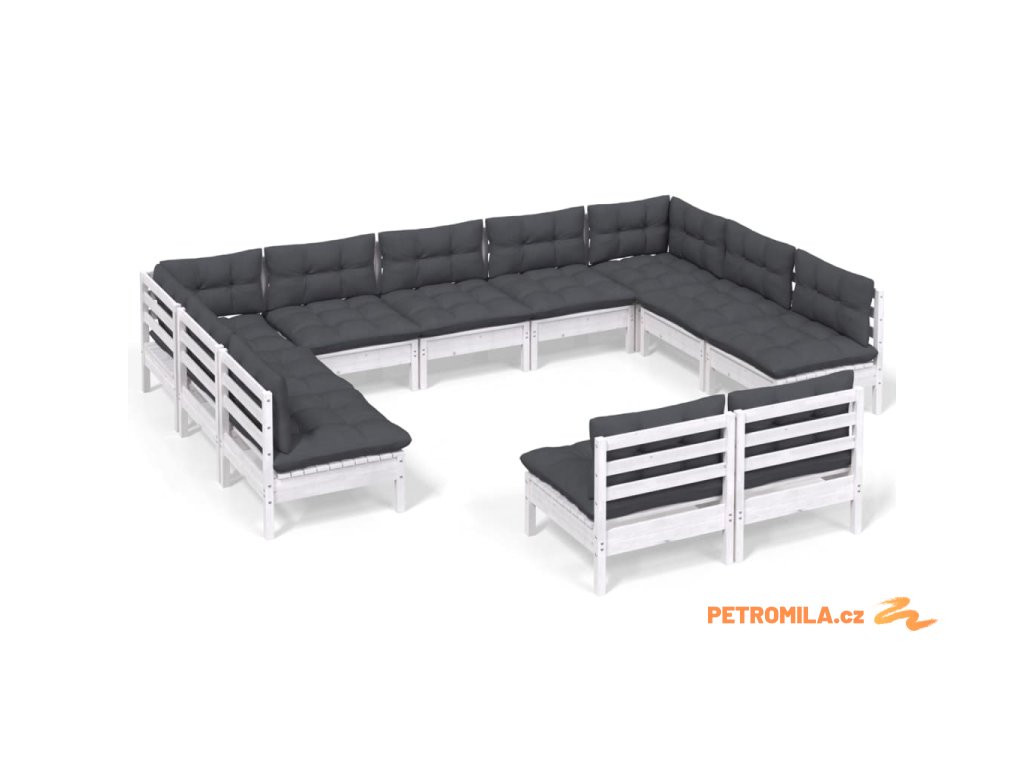 11dílná zahradní sedací souprava podušky bílá masivní borovice