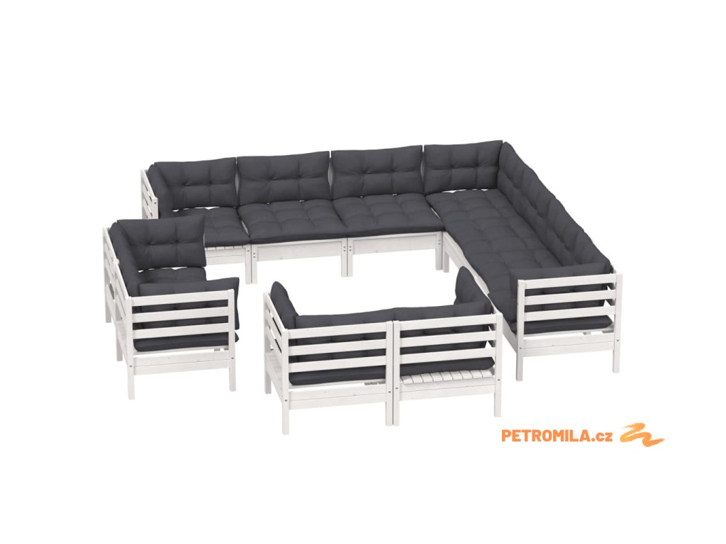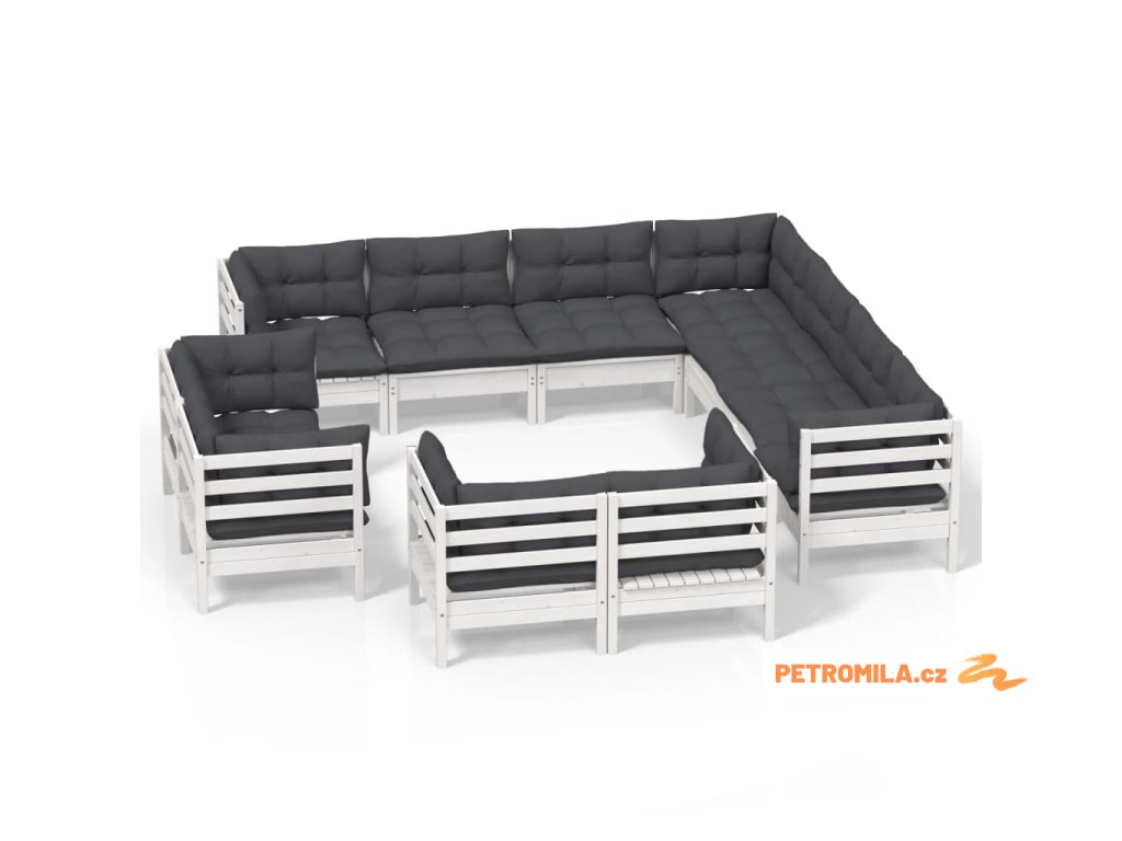 11dílná zahradní sedací souprava podušky bílá masivní borovice