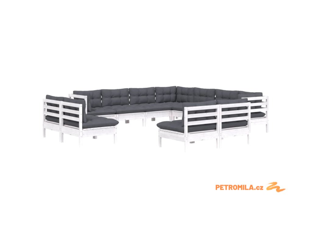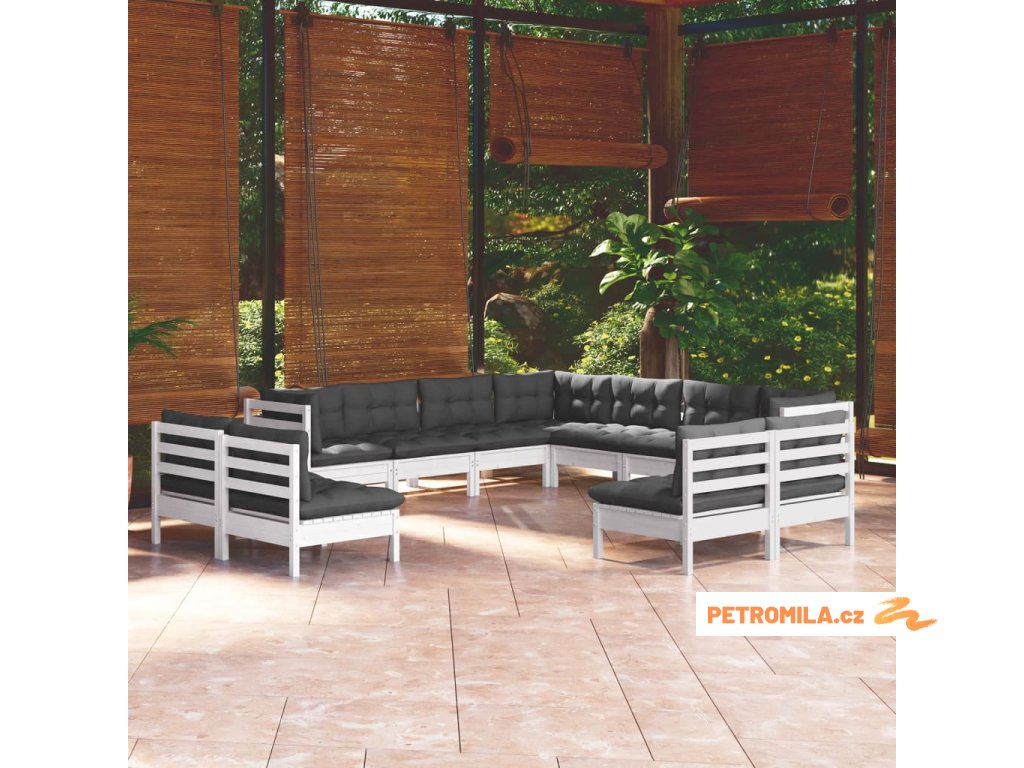 11dílná zahradní sedací souprava podušky bílá masivní borovice