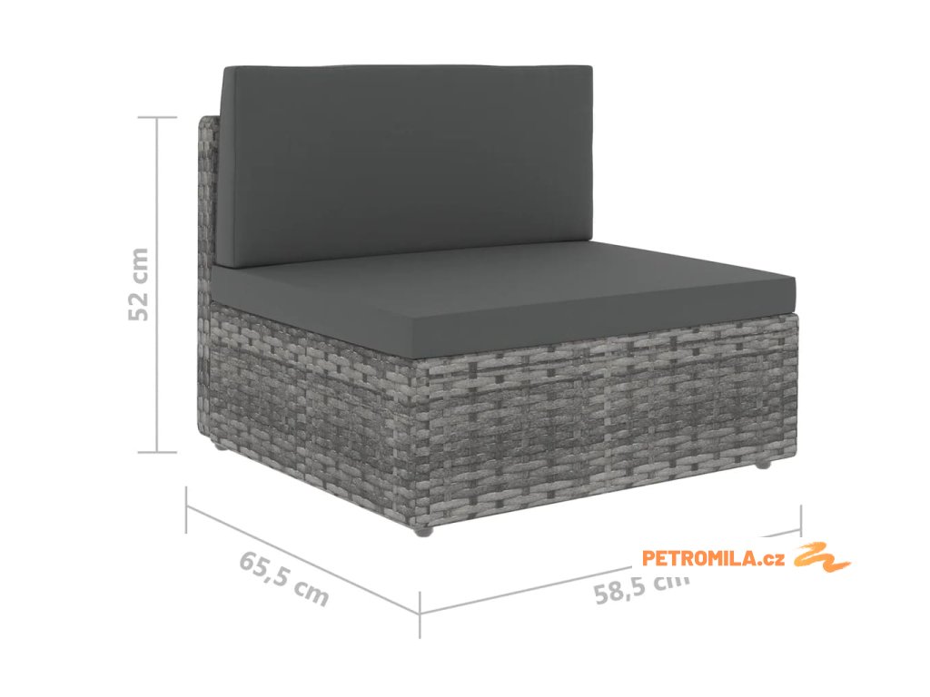 - Rozměry středové pohovky: 58,5 x 65,5 x 52 cm (Š x H x V)