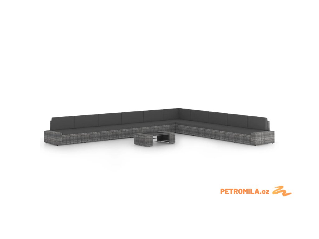 11dílná zahradní sedací souprava polyratan šedá