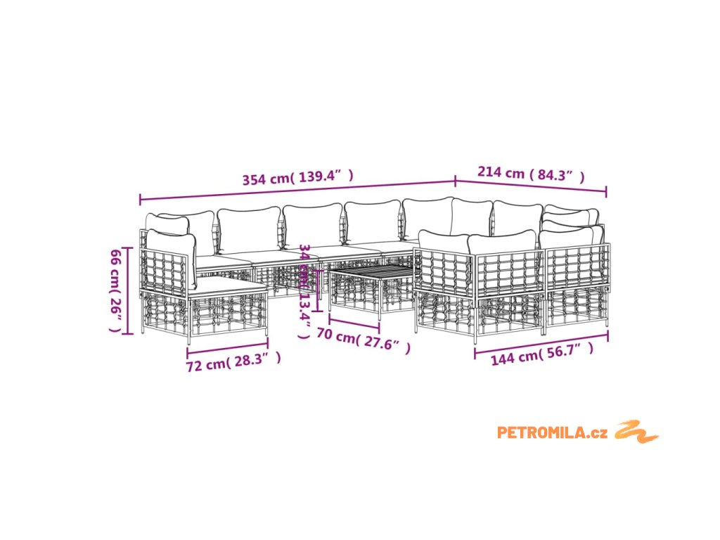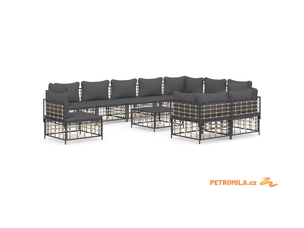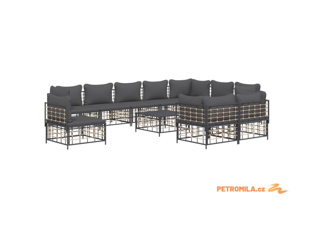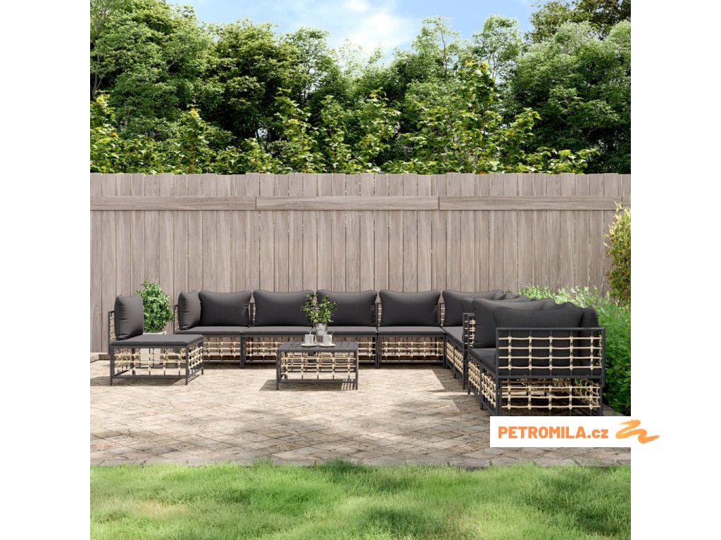 11dílná zahradní sedací souprava s poduškami antracit polyratan
