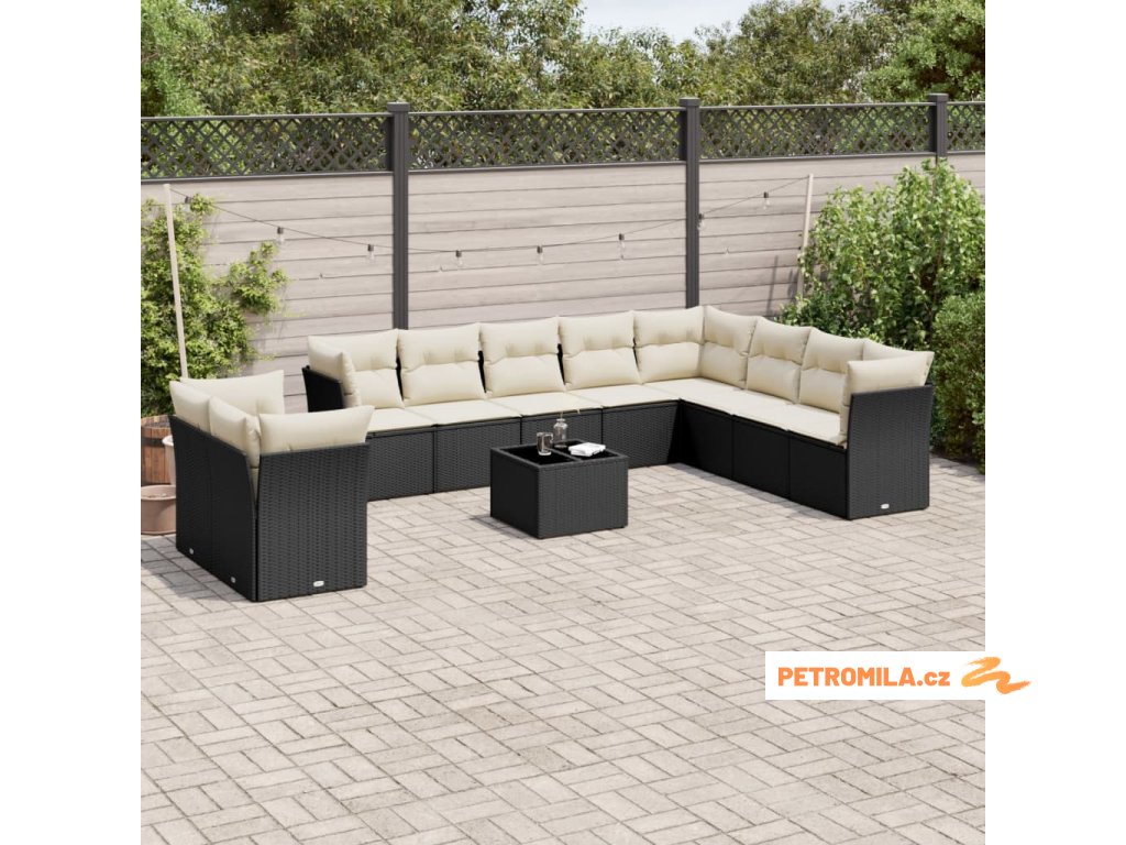 11dílná zahradní sedací souprava s poduškami černá polyratan