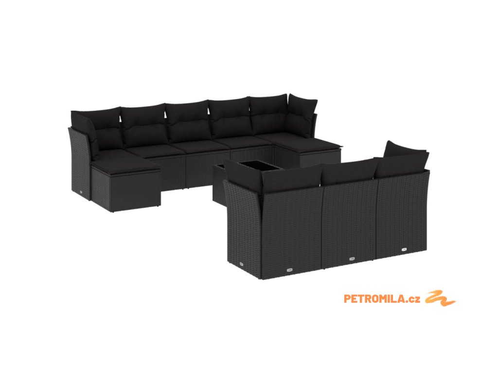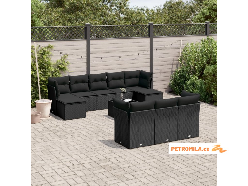11dílná zahradní sedací souprava s poduškami černá polyratan