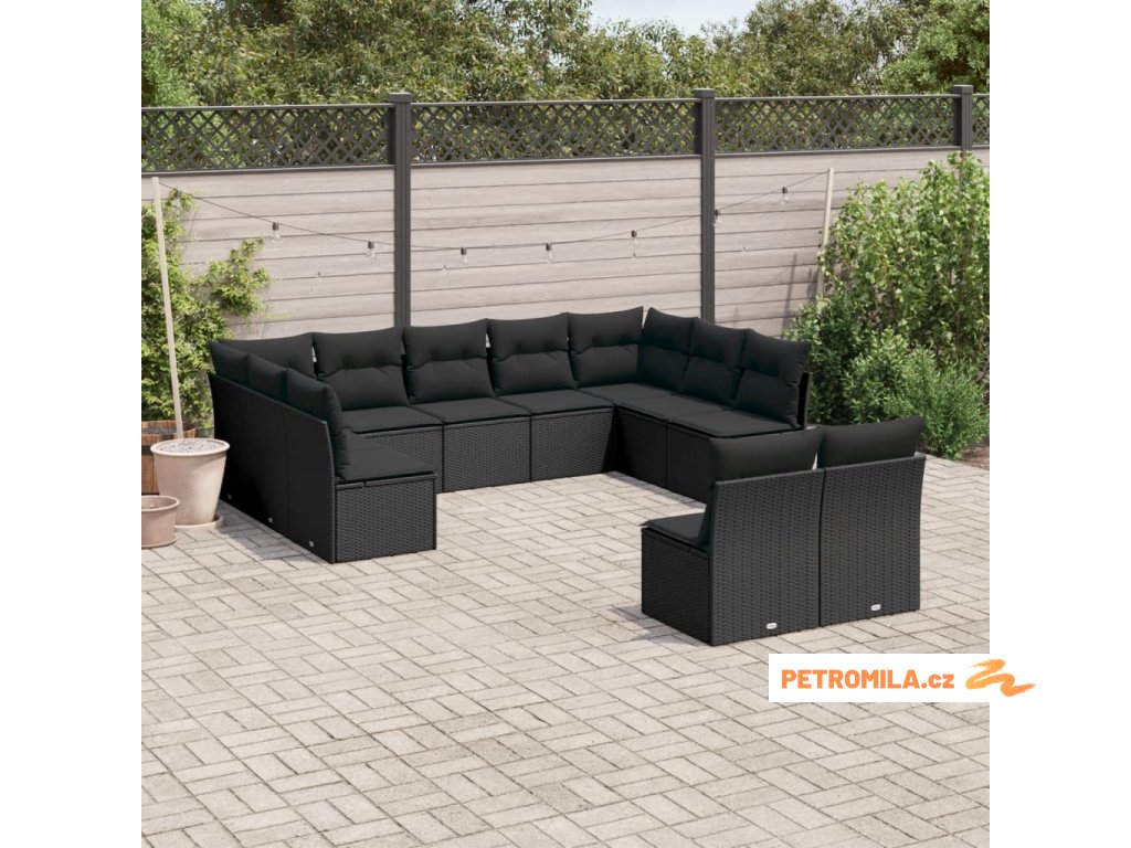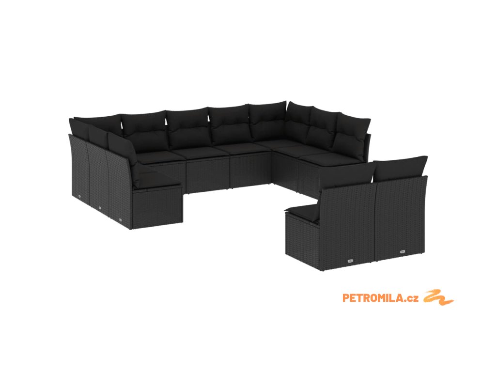 11dílná zahradní sedací souprava s poduškami černá polyratan