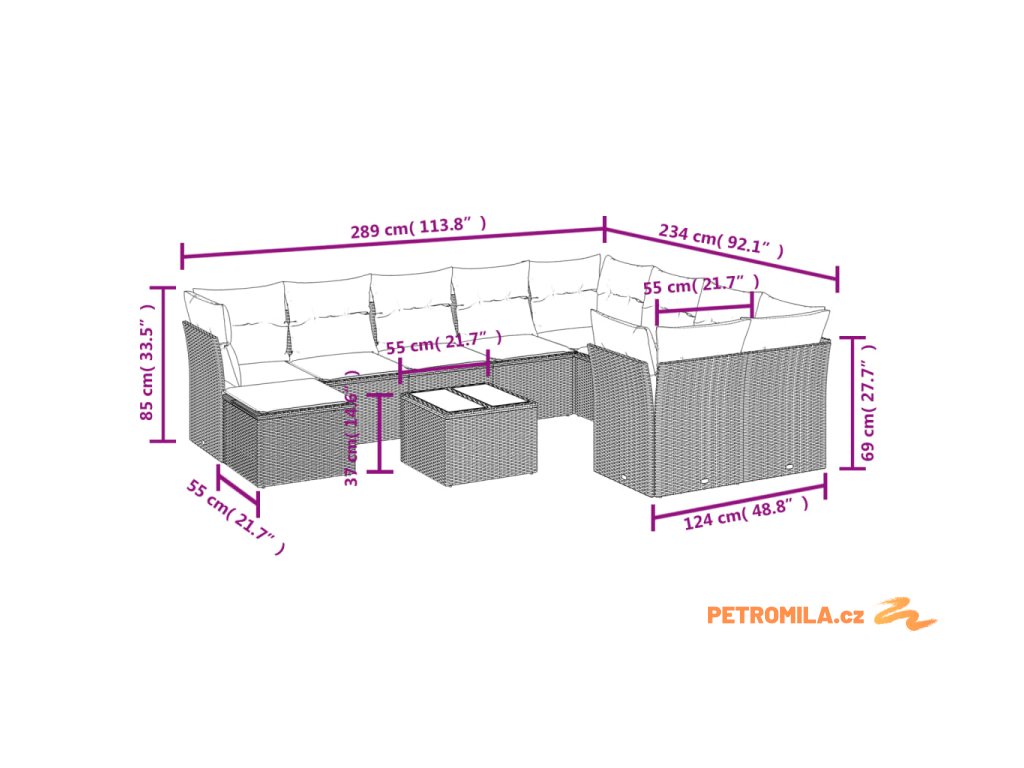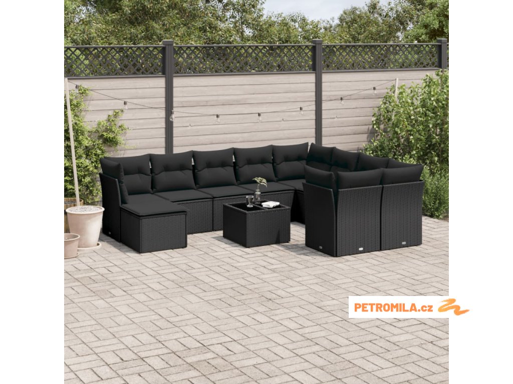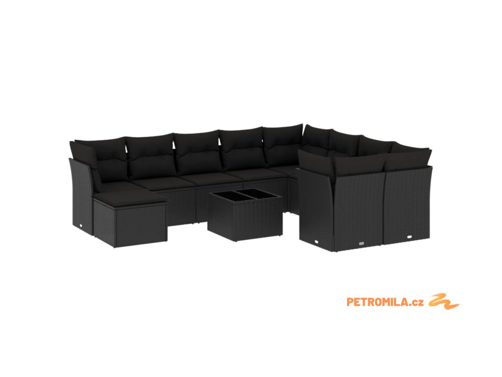 11dílná zahradní sedací souprava s poduškami černá polyratan