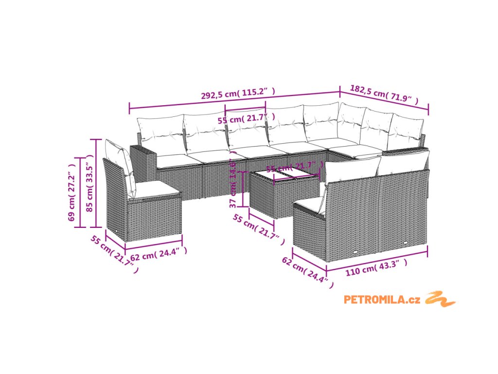 Tato zahradní sedací souprava je dokonalým doplňkem vaší zahrady, terasy nebo dvorku a poskytne vám pohodlné a příjemné místo, kde si můžete povídat s rodinou a přáteli nebo jen tak odpočívat a užívat si pobyt venku.