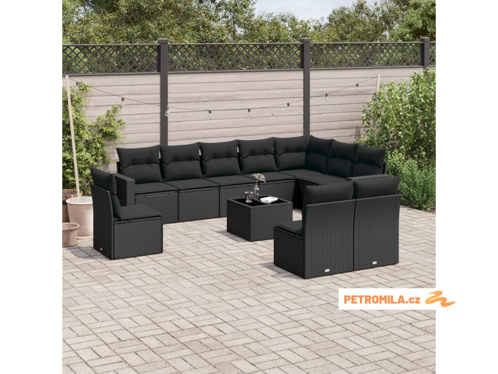 11dílná zahradní sedací souprava s poduškami černá polyratan