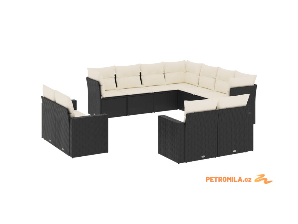 11dílná zahradní sedací souprava s poduškami černá polyratan