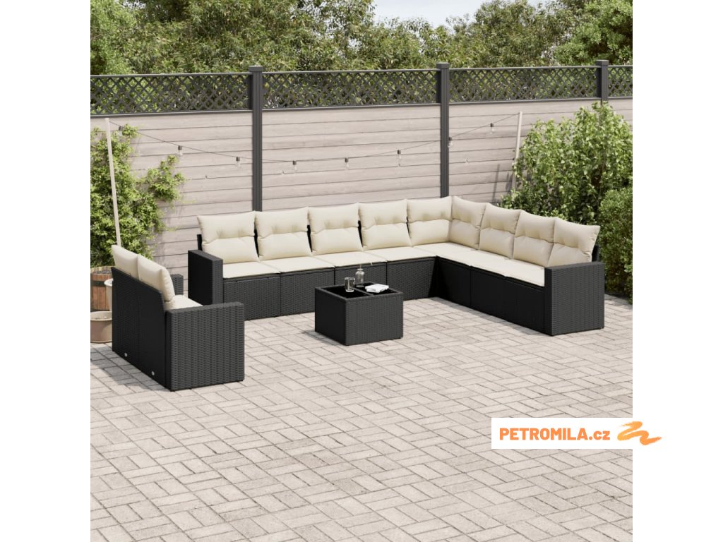 11dílná zahradní sedací souprava s poduškami černá polyratan