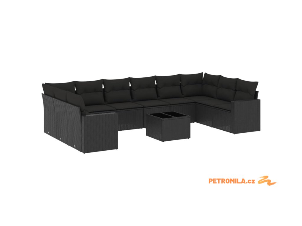 11dílná zahradní sedací souprava s poduškami černá polyratan