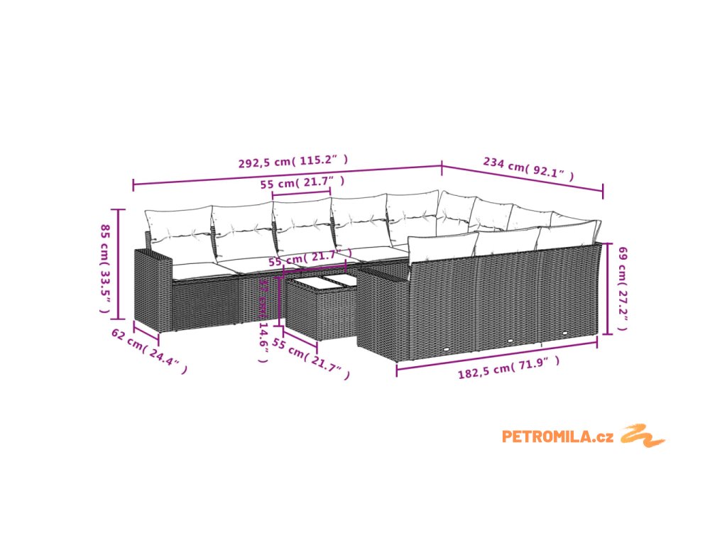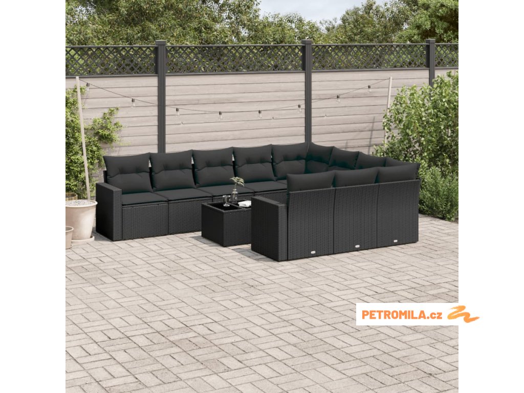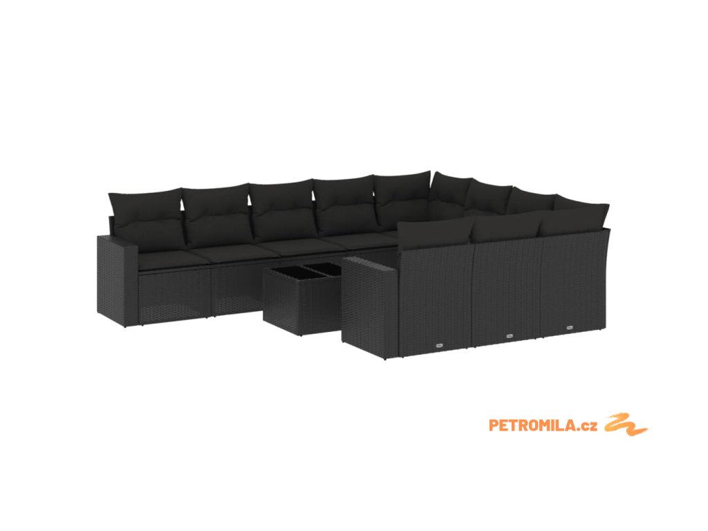11dílná zahradní sedací souprava s poduškami černá polyratan