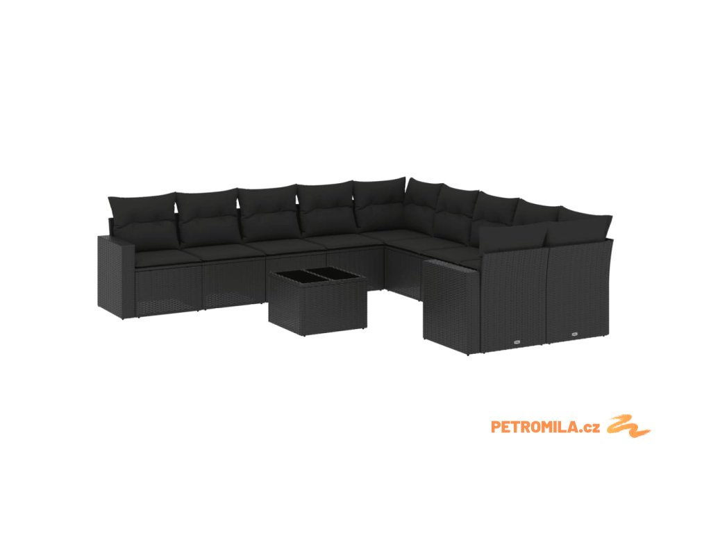 11dílná zahradní sedací souprava s poduškami černá polyratan
