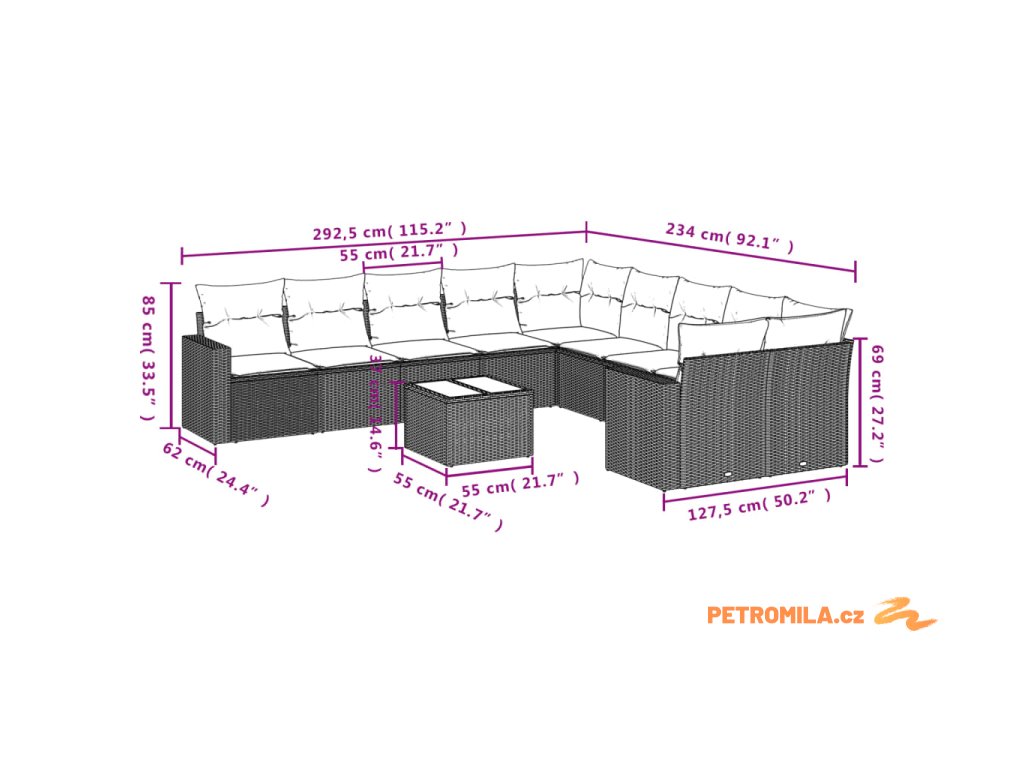 Tato zahradní sedací souprava je dokonalým doplňkem vaší zahrady, terasy nebo dvorku a poskytne vám pohodlné a příjemné místo, kde si můžete povídat s rodinou a přáteli nebo jen tak odpočívat a užívat si pobyt venku.