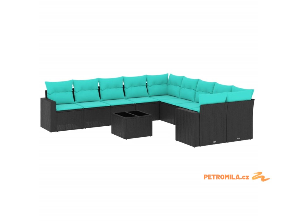 11dílná zahradní sedací souprava s poduškami černá polyratan