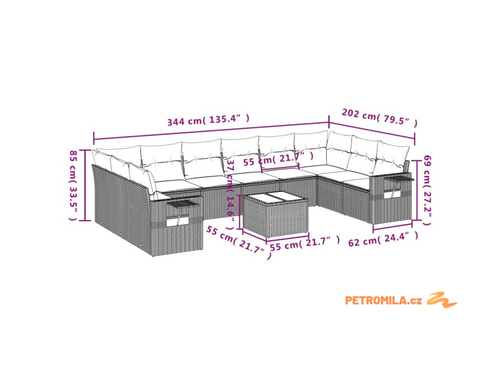 - Modulární design: Tato sada venkovního nábytku se vyznačuje modulární konstrukcí, je tedy zcela flexibilní a lze ji snadno přemisťovat, takže si můžete uspořádat venkovní nábytek dle vašich potřeb.