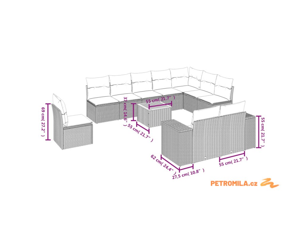 11dílná zahradní sedací souprava s poduškami černá polyratan