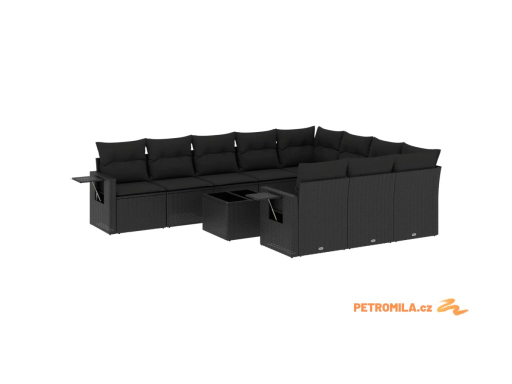 11dílná zahradní sedací souprava s poduškami černá polyratan