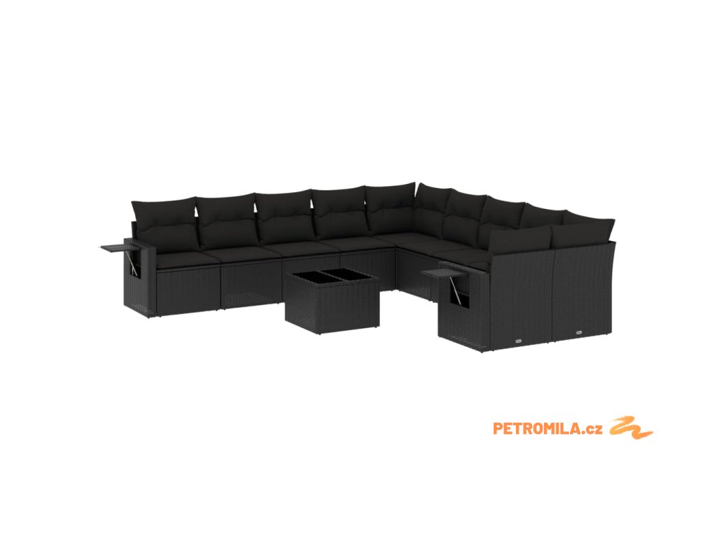 11dílná zahradní sedací souprava s poduškami černá polyratan