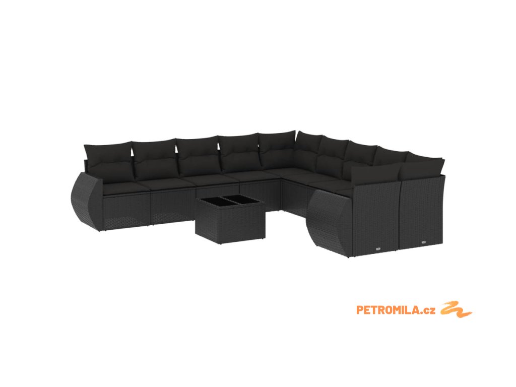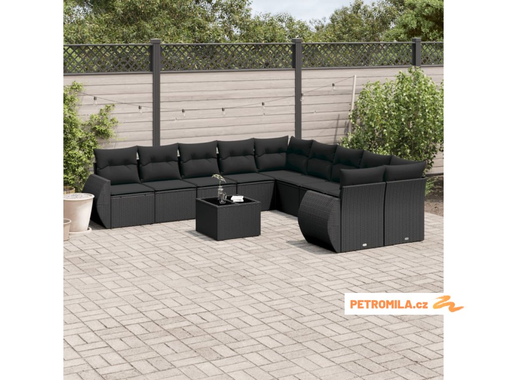 11dílná zahradní sedací souprava s poduškami černá polyratan
