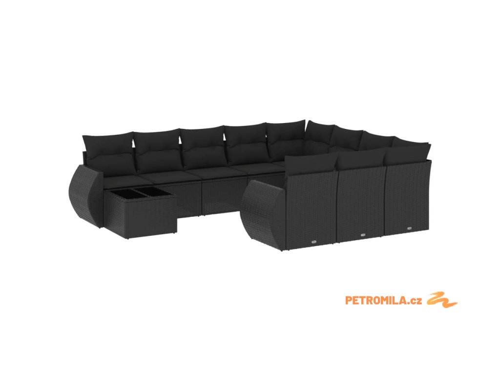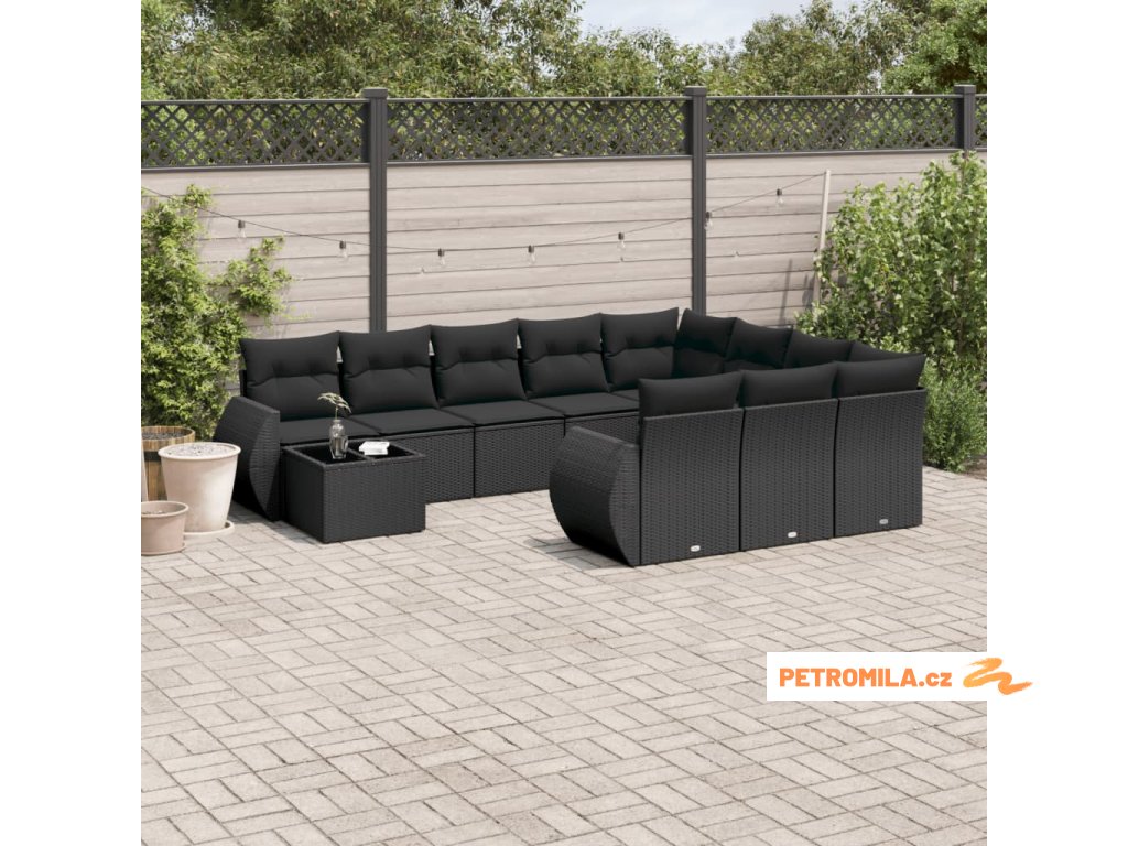 11dílná zahradní sedací souprava s poduškami černá polyratan