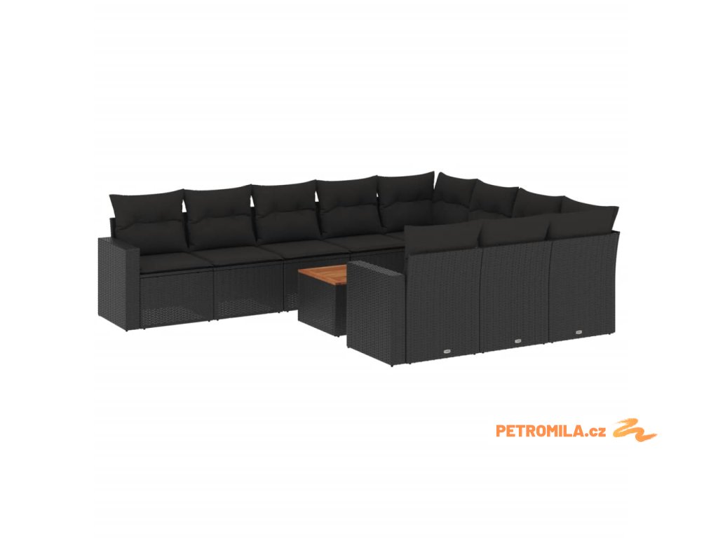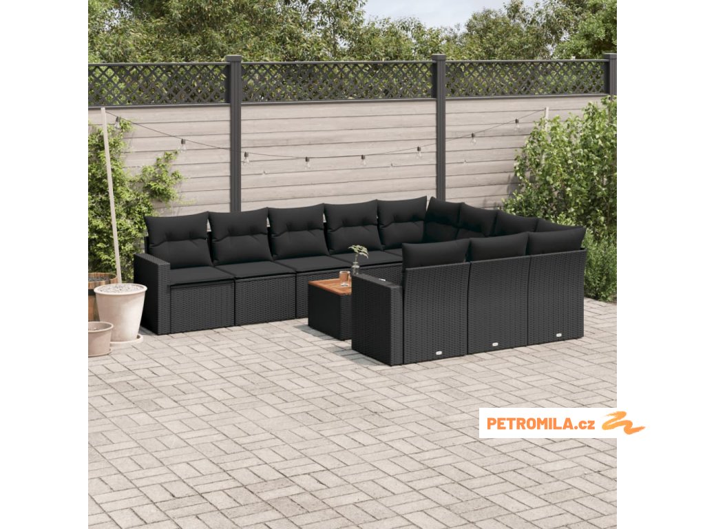 11dílná zahradní sedací souprava s poduškami černá polyratan