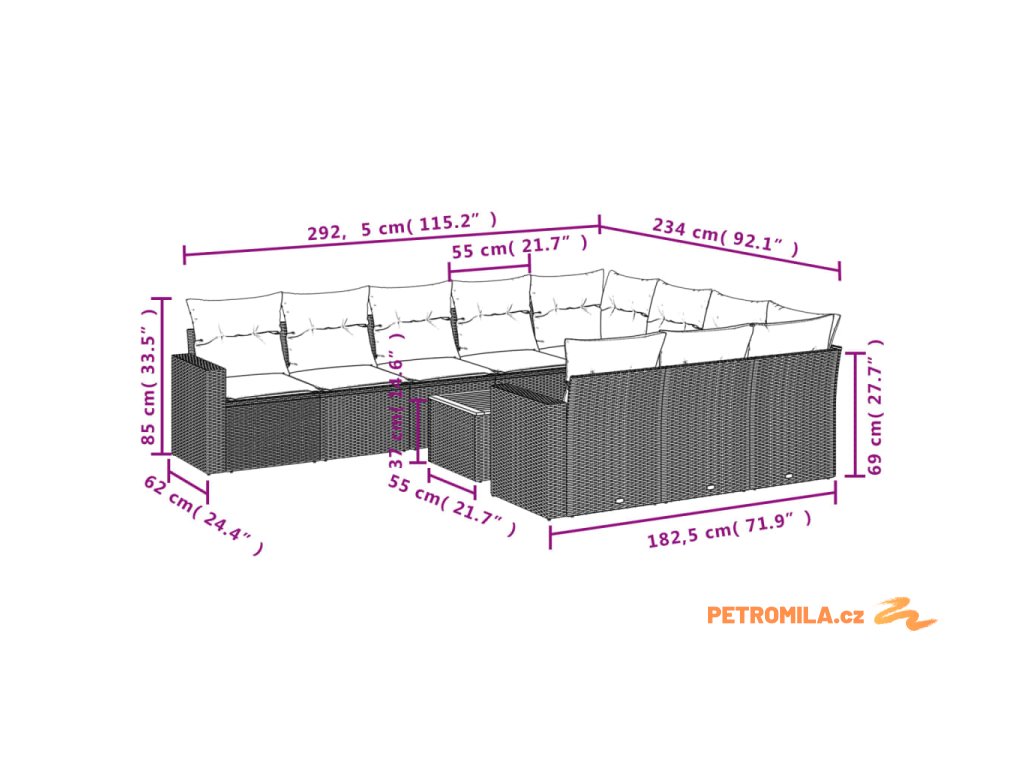 Tato zahradní sedací souprava je dokonalým doplňkem vaší zahrady, terasy nebo dvorku a poskytne vám pohodlné a příjemné místo, kde si můžete povídat s rodinou a přáteli nebo jen tak odpočívat a užívat si pobyt venku.